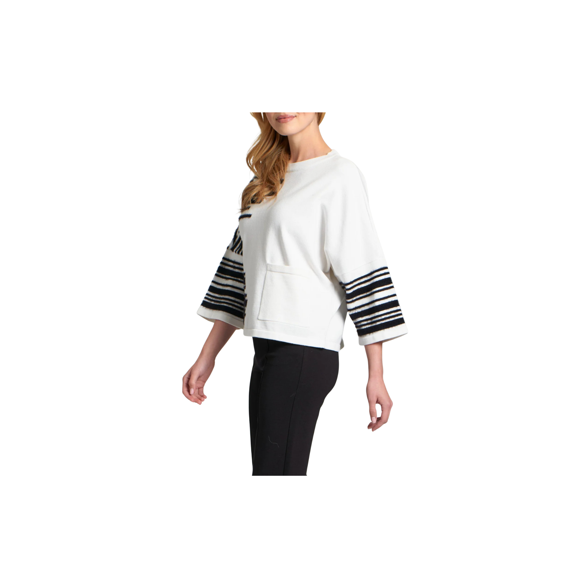 APNY Stripe Fuzzy Yarn Stripe Pullover -White/Black
