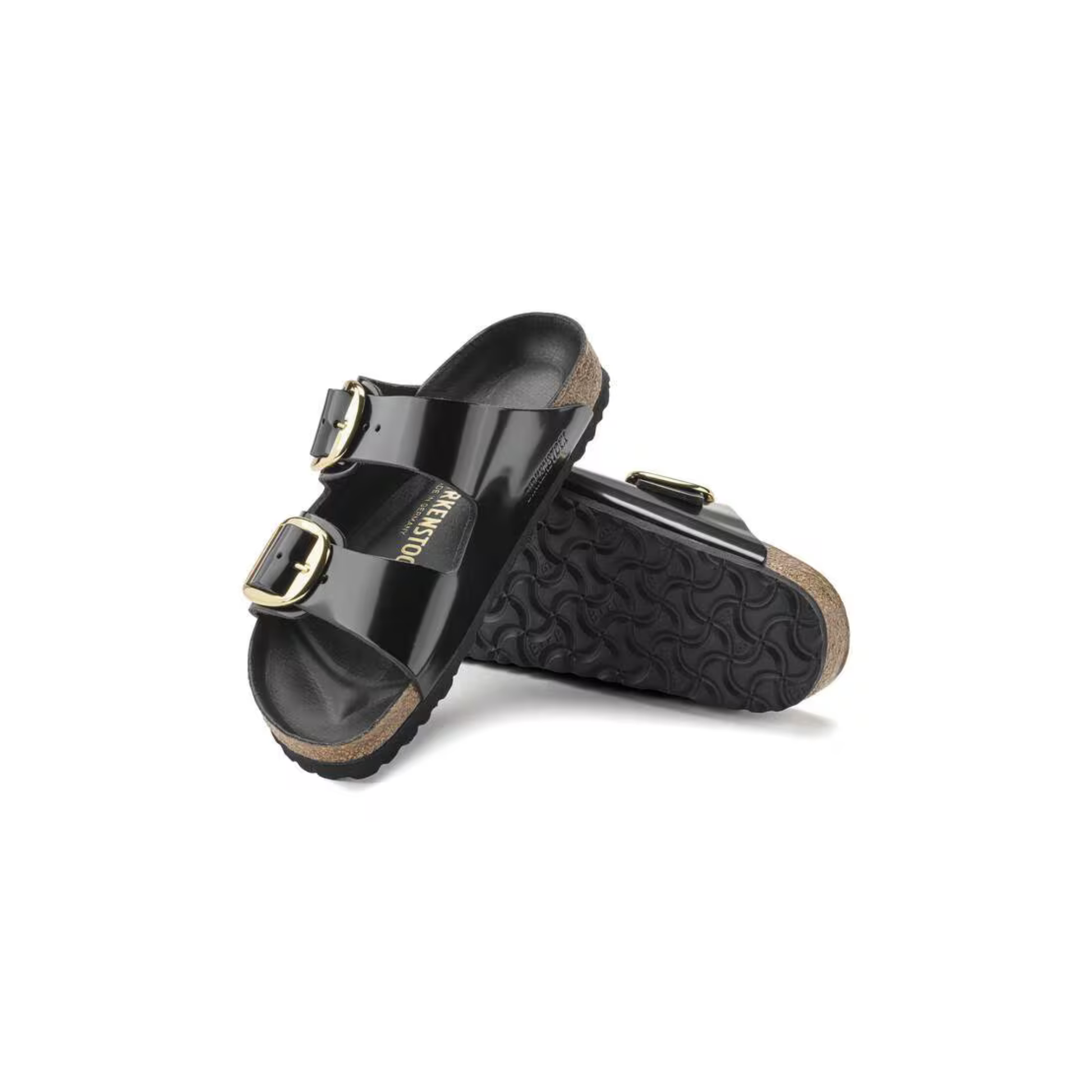 The legendary two-strap design from BIRKENSTOCK with amplified buckle accent - the Arizona Big Buckle. The Big Buckle version features a large, elegant buckle creating a bold yet minimalist design. The semi-exquisite footbed is fully lined with soft piumato leather, making it exceptionally comfortable. The upper is made from high-quality natural leather with a high shine finish.