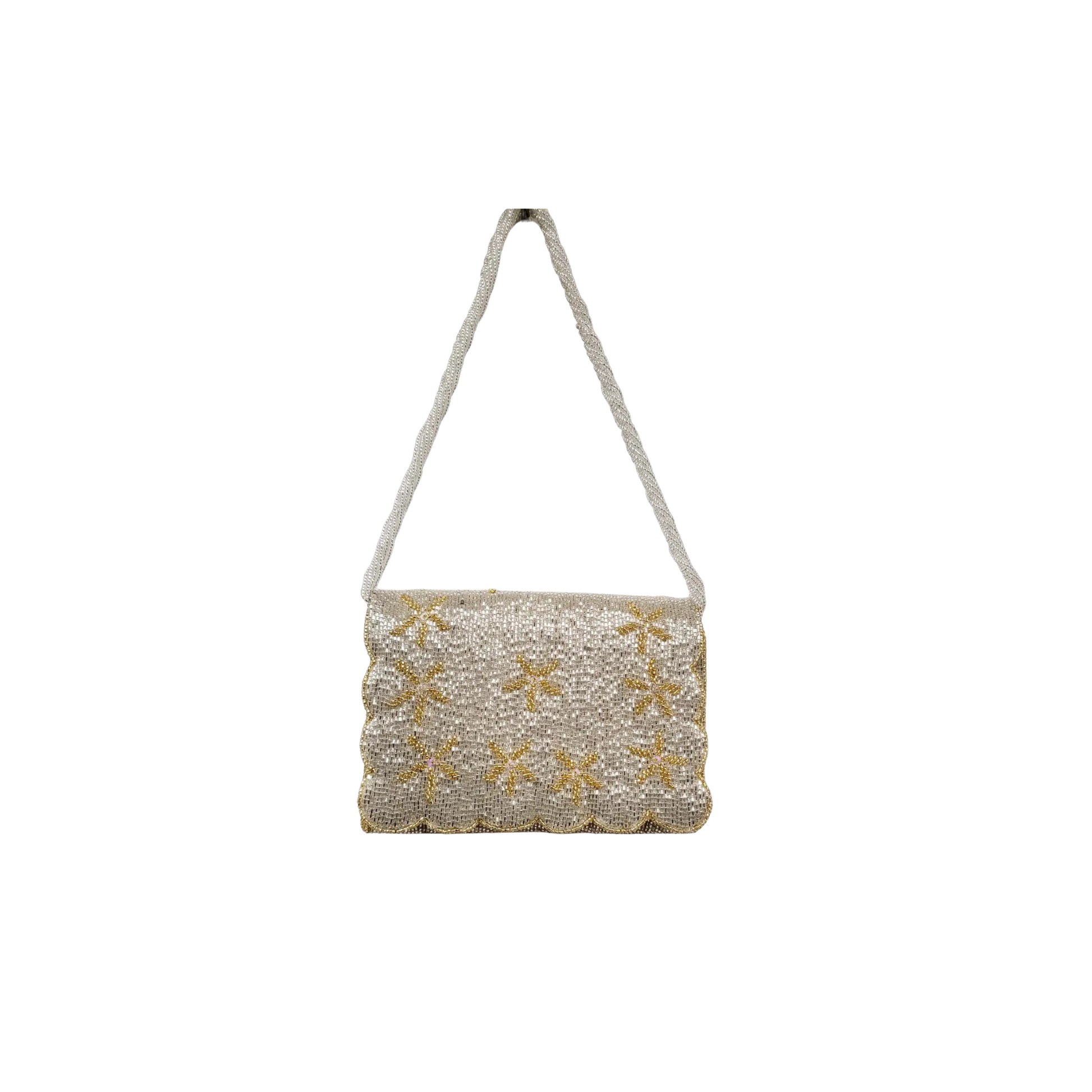 Beaded Victorian Clutch Gold/Silver Scallop Flap