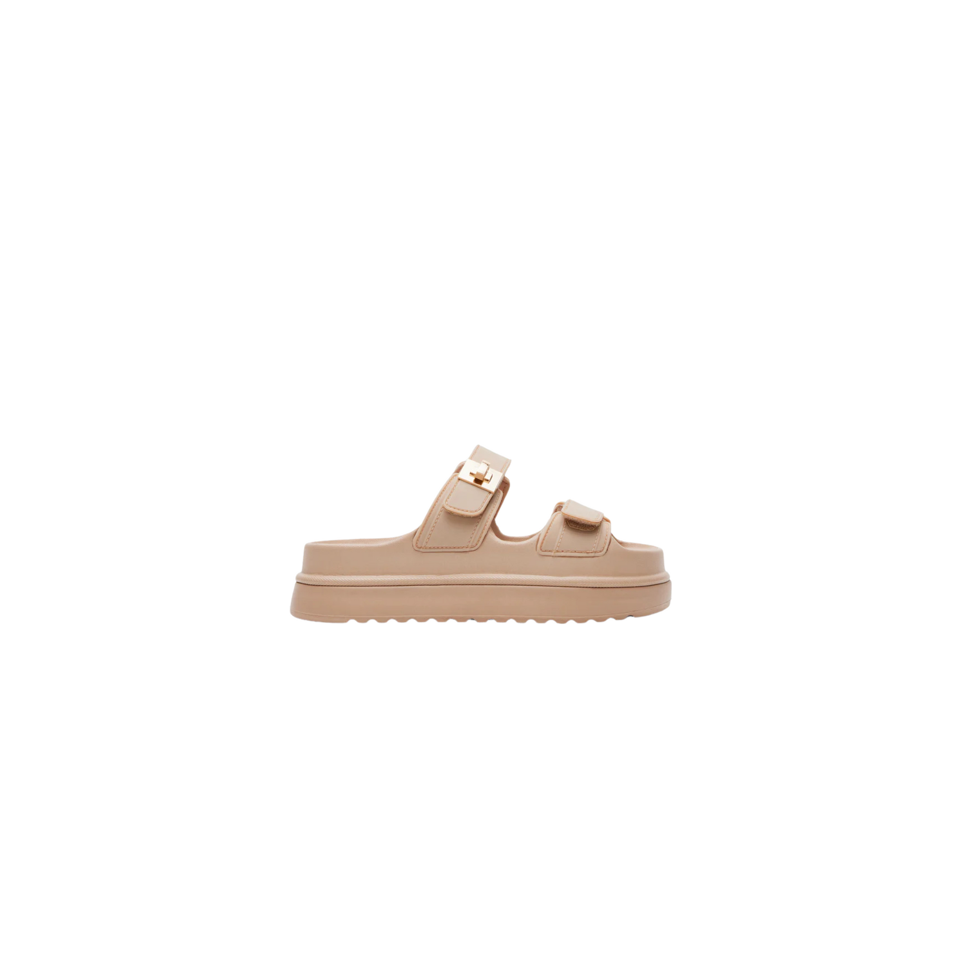 Elevate your style with the BIGSCHMONA JELLY platform slide sandal. The flatform design provides a modern twist while the turn-lock hardware accent adds a touch of sophistication. Step up your fashion game while enjoying the comfort and stability of this versatile shoe.