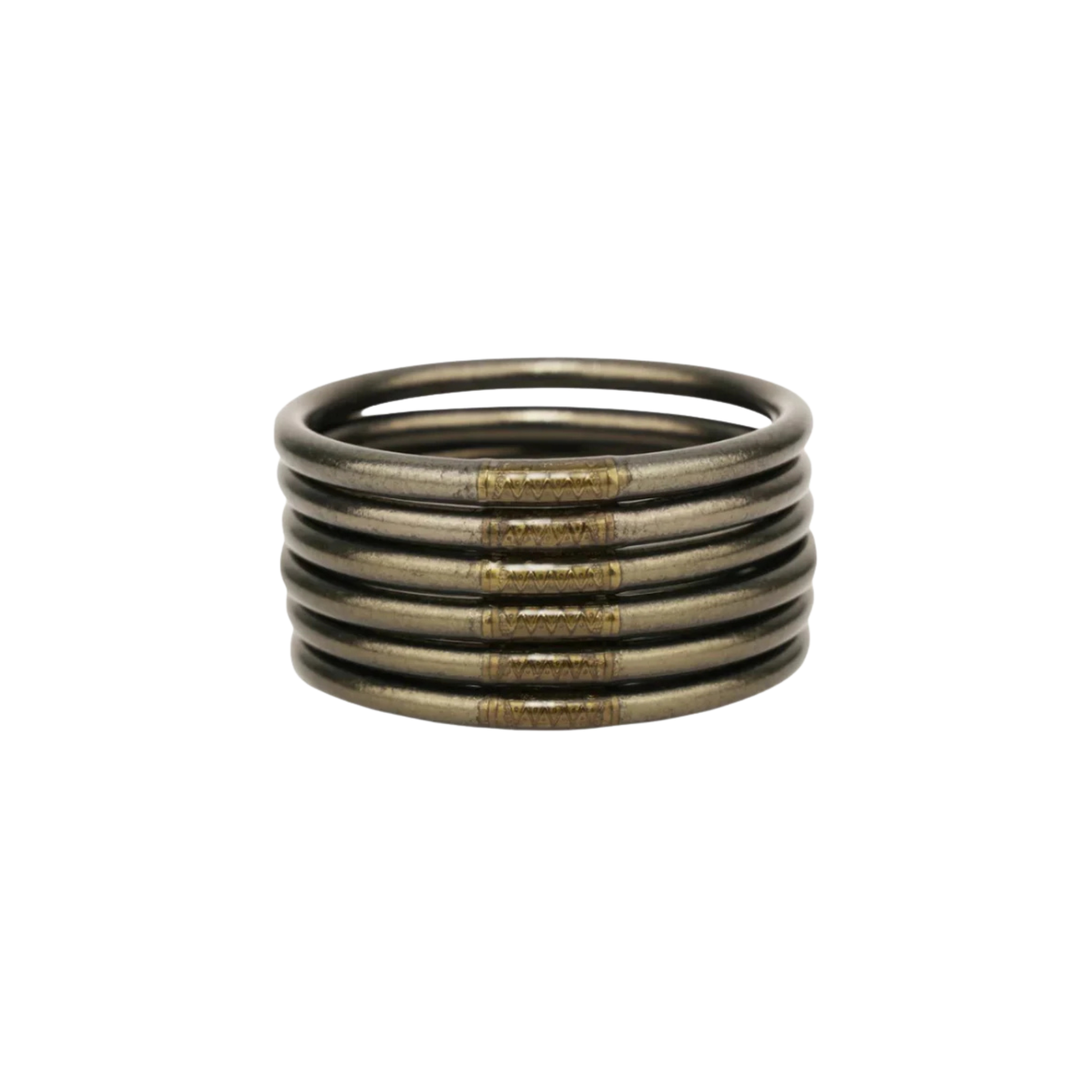BuDhaGirl Flint All Weather Bangles® (AWB®), are the epitome of luxury in BuDhaGirl's impressive lifestyle collection. Flint ignites the very spark of elegance! Our remarkable bangles redefine elegance with their weightless, soundless, waterproof, and TSA-proof design. Crafted to perfection, each set comprises six bangles, symbolizing intentions for the day. Wear them anywhere, as their soundless and waterproof nature ensures seamless integration into any setting.