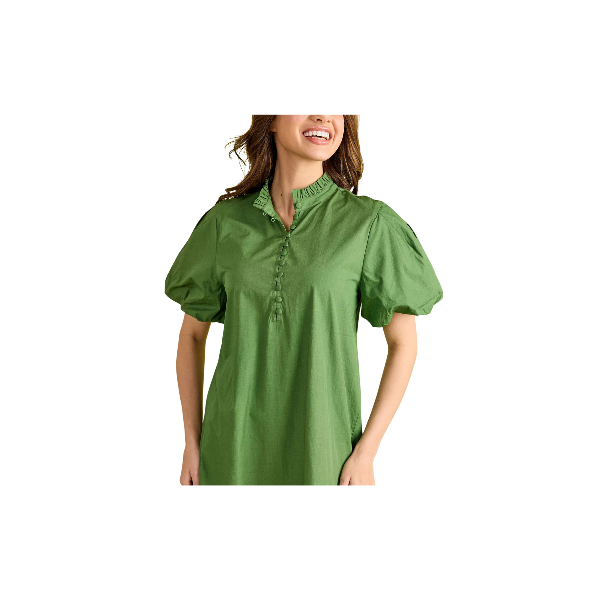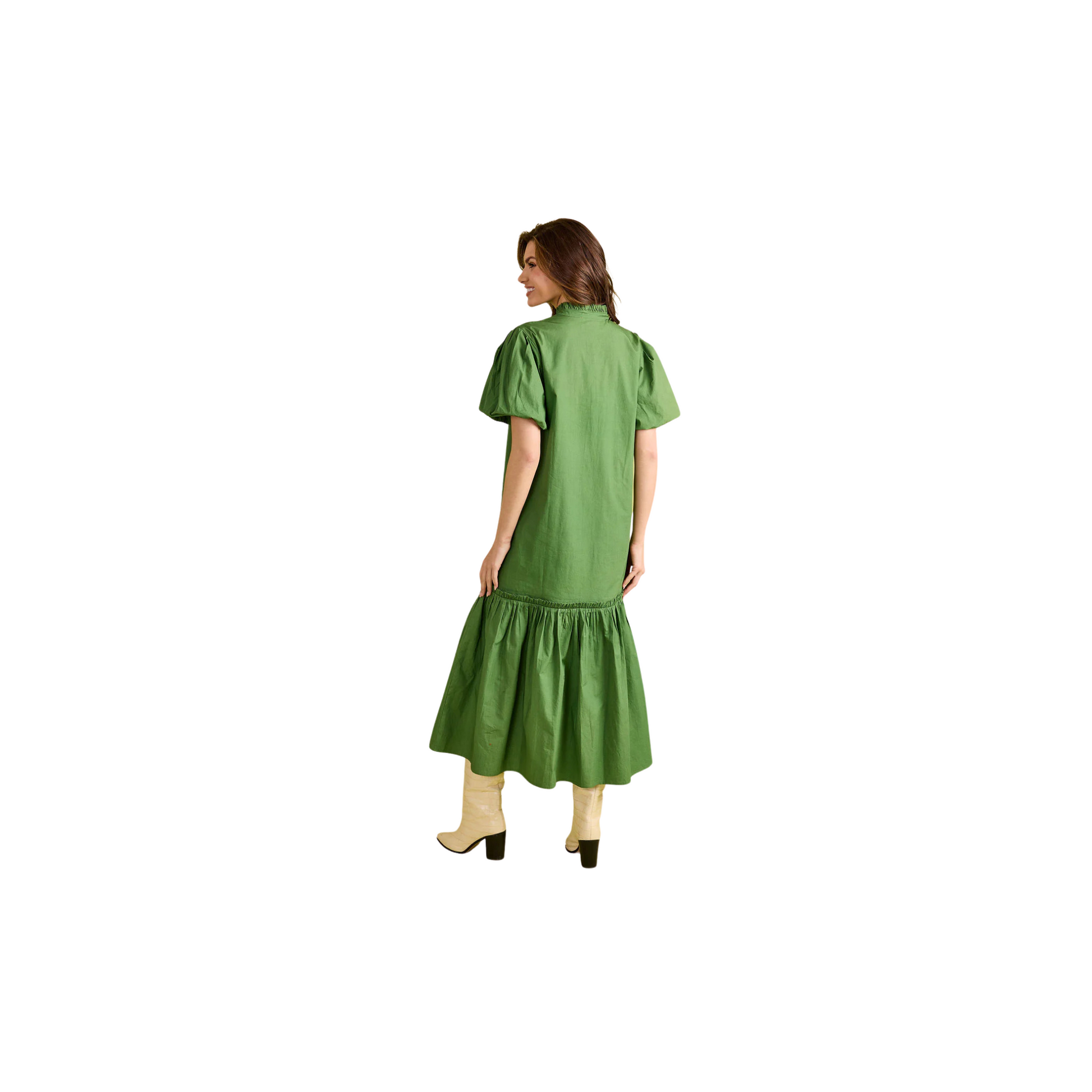 The Carly Dress is a flowy, maxi style dress with a soft print in boxwood. With wide sleeves and an easy body, it’s an easy statement piece that’s comfy and cool all at once.