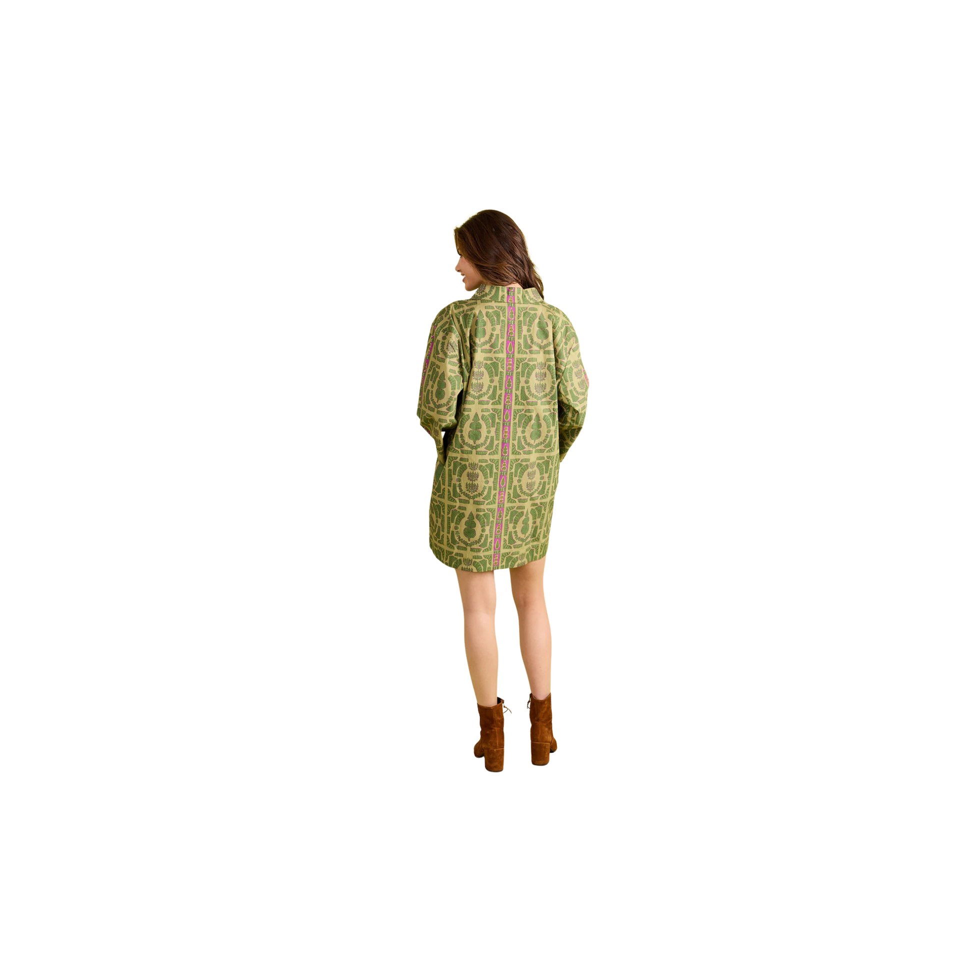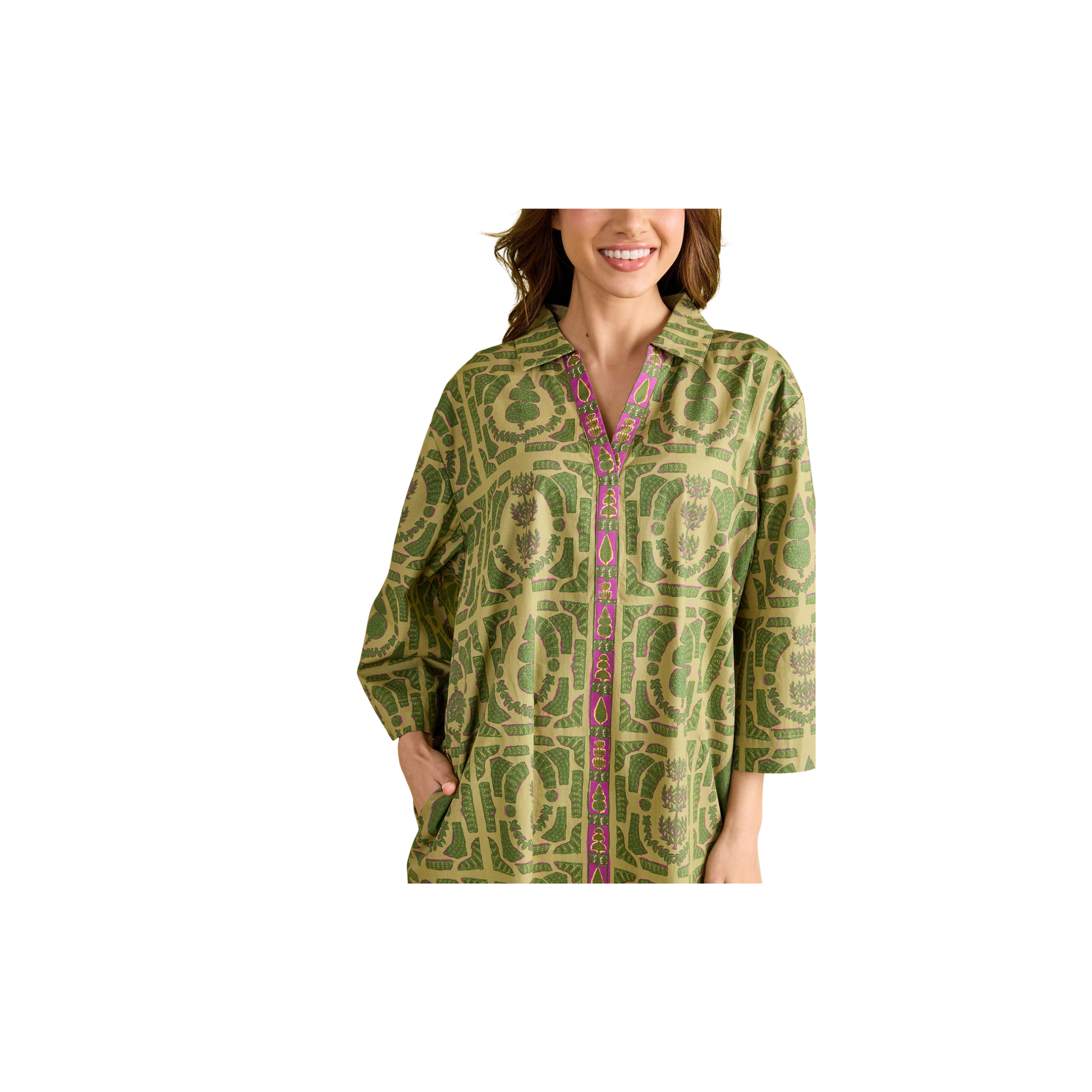 The Collette Dress is a stylish and relaxed piece that exudes effortless elegance. Featuring a collared neckline and a short kaftan silhouette, this dress boasts long, flowy sleeves that gracefully drape and move with you. Perfect for laid-back days or casual gatherings, the Collette Dress offers a perfect balance of comfort and style, making it a versatile addition to any wardrobe.