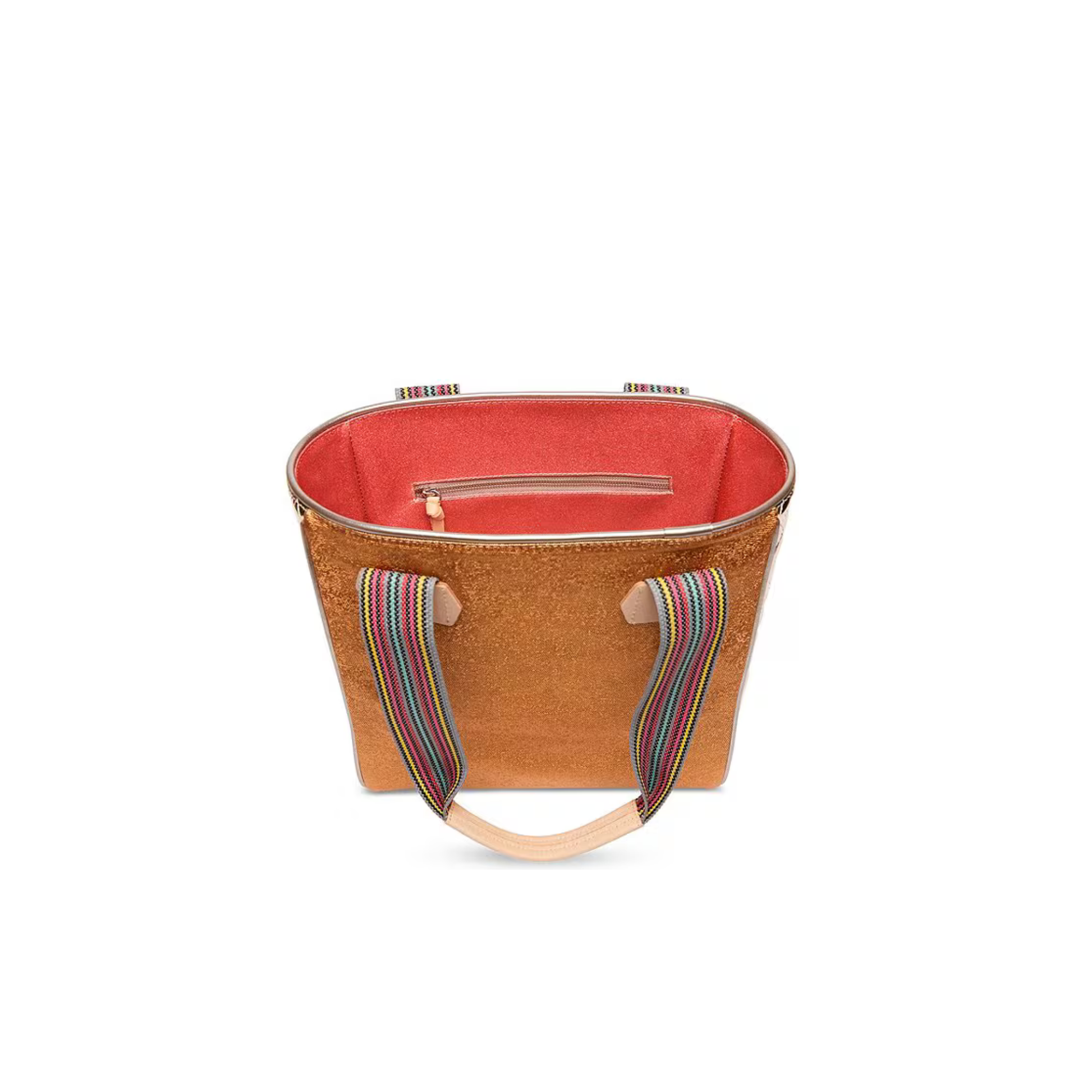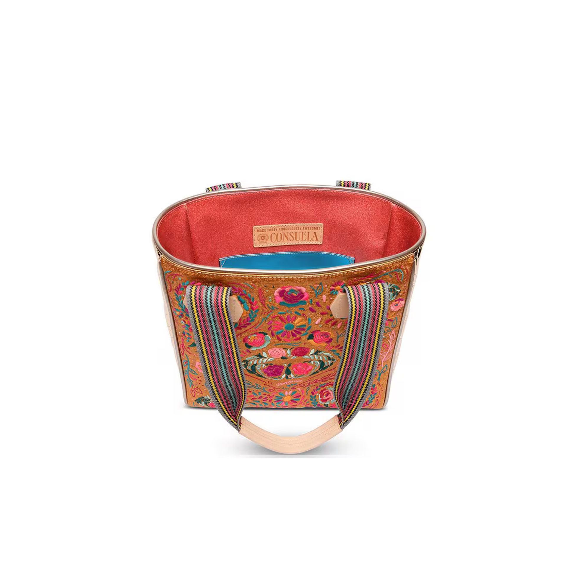 - Bronzer Classic Tote Metallic texture with floral embroidery exterior