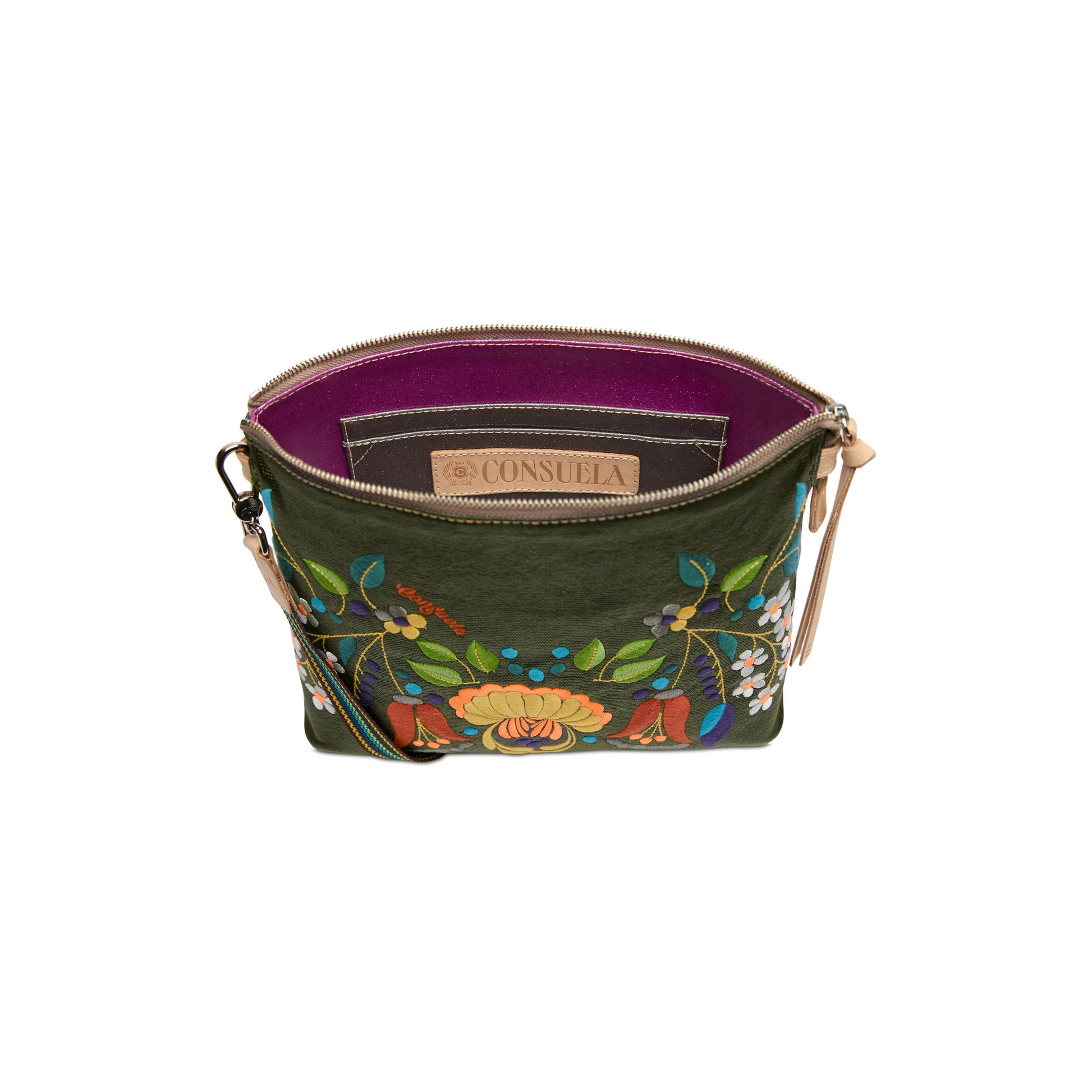 This embroidered crossbody bag is ready to take on the day with an adjustable strap and two interior pockets. Crafted with a roomy open interior, the Downtown Crossbody can carry the essentials and more.