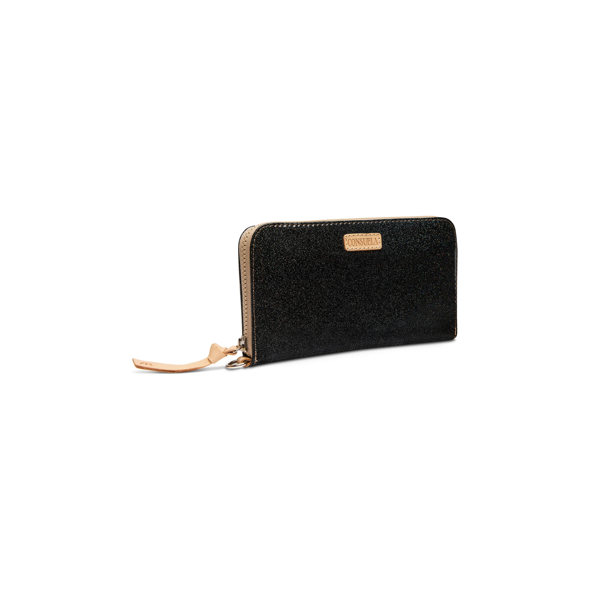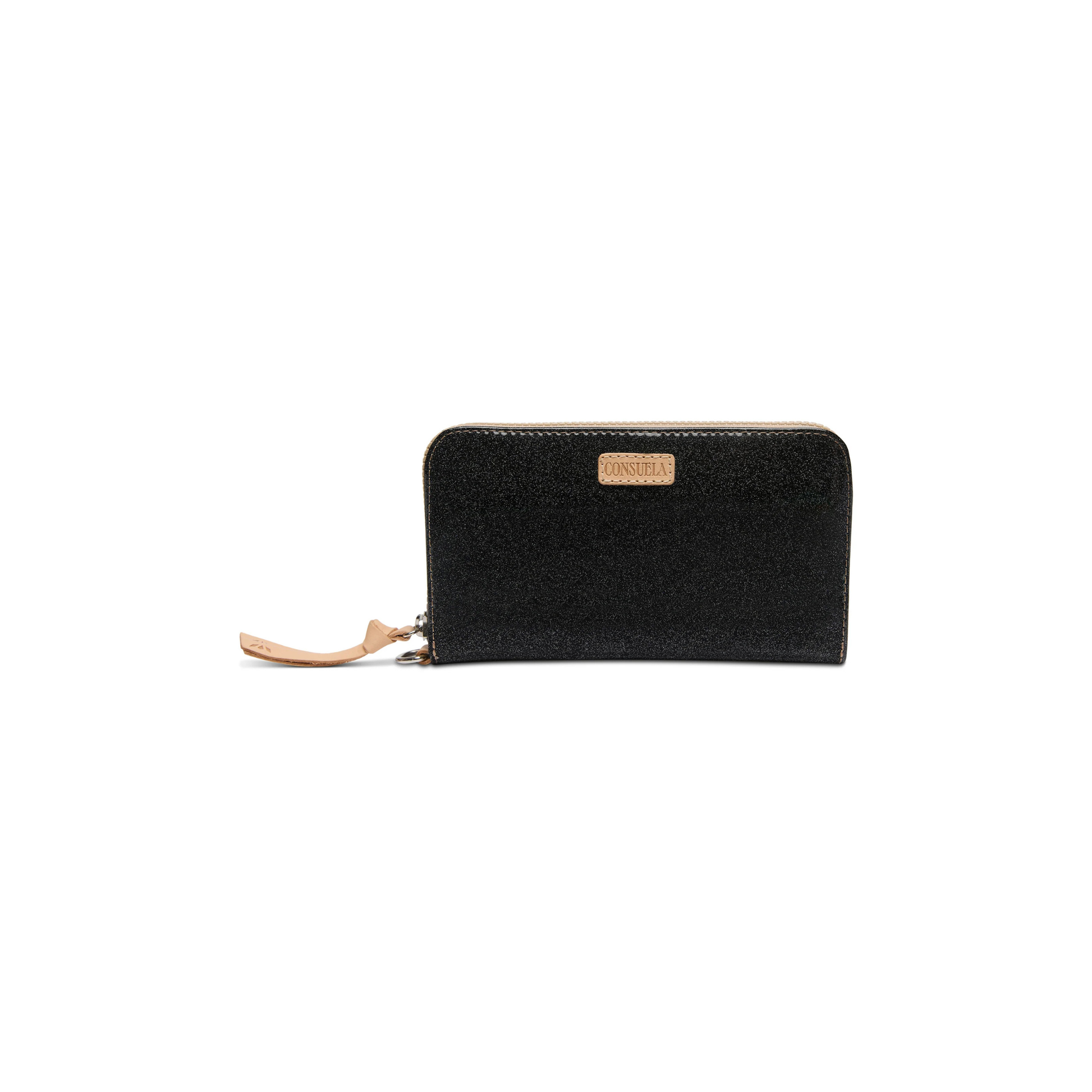 Function and versatility in the palm of your hand. Consuela's new Essential Wallet is a streamlined, large capacity wallet with tons of room for cards, cash, and receipts — plus a zippered center compartment for coins and keepsakes. They added a D-ring so you can easily clip it to any Consuela wristlet strap or anchor onto an inside lanyard for added security.