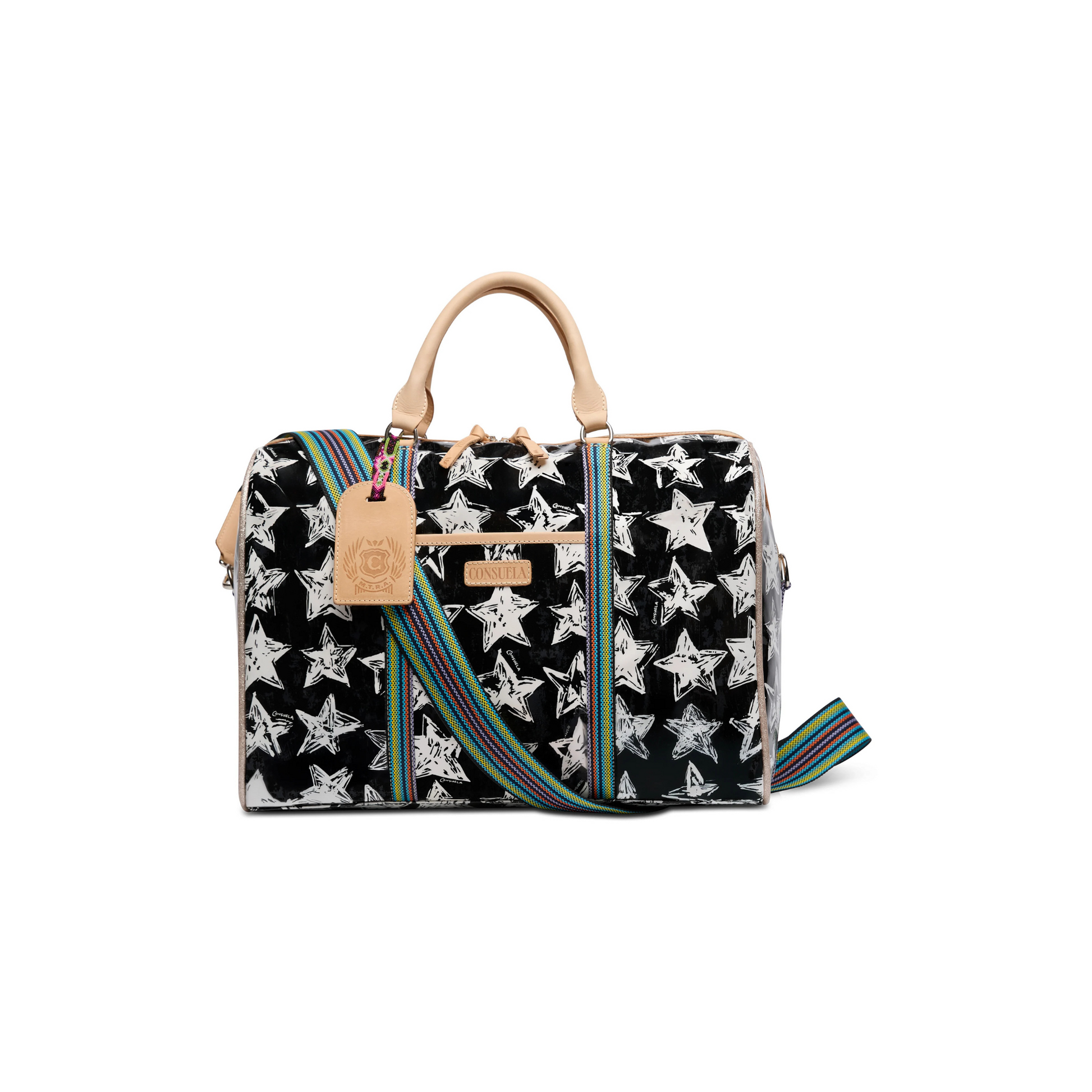 This spacious and colorful duffel is the perfect carry-on for a weekend getaway, making a statement with functionality, durability, and style. Topped with natural leather handles and an adjustable webbing strap, the Jetsetter is crafted to hold its shape and makes traveling easy with ample interior storage and functional pockets.