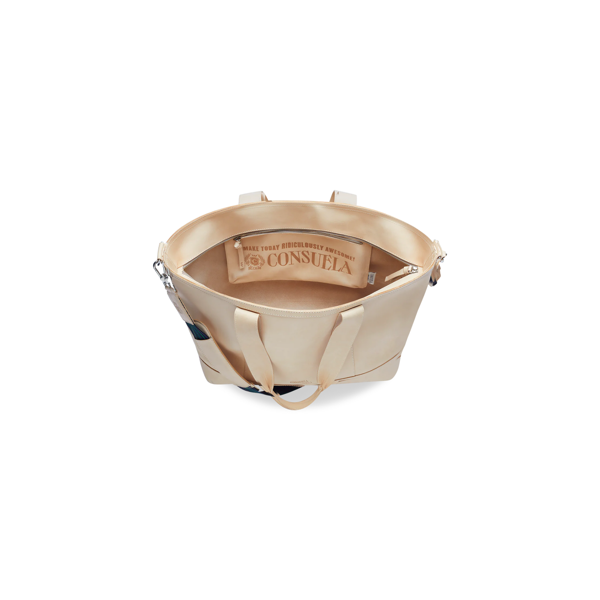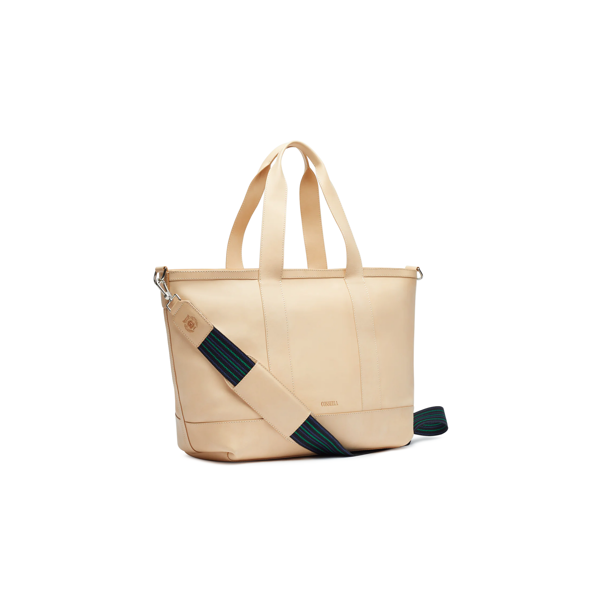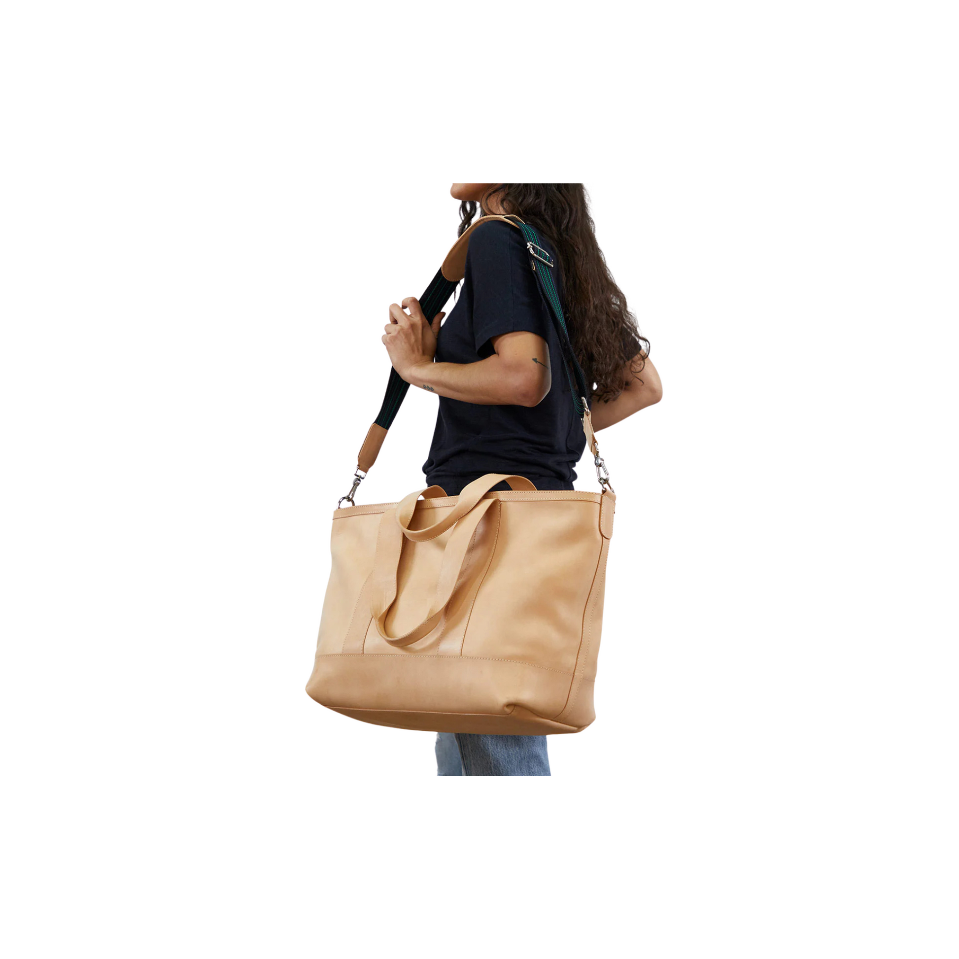 The Max Tote silhouette is a roomy tote made to carry you from day-to-day. Crafted in natural Diego leather, this tote can be carried by the leather handles or by the comfortable woven Wintergreen Strap. This bag zips at the top to hold all you need with ease.