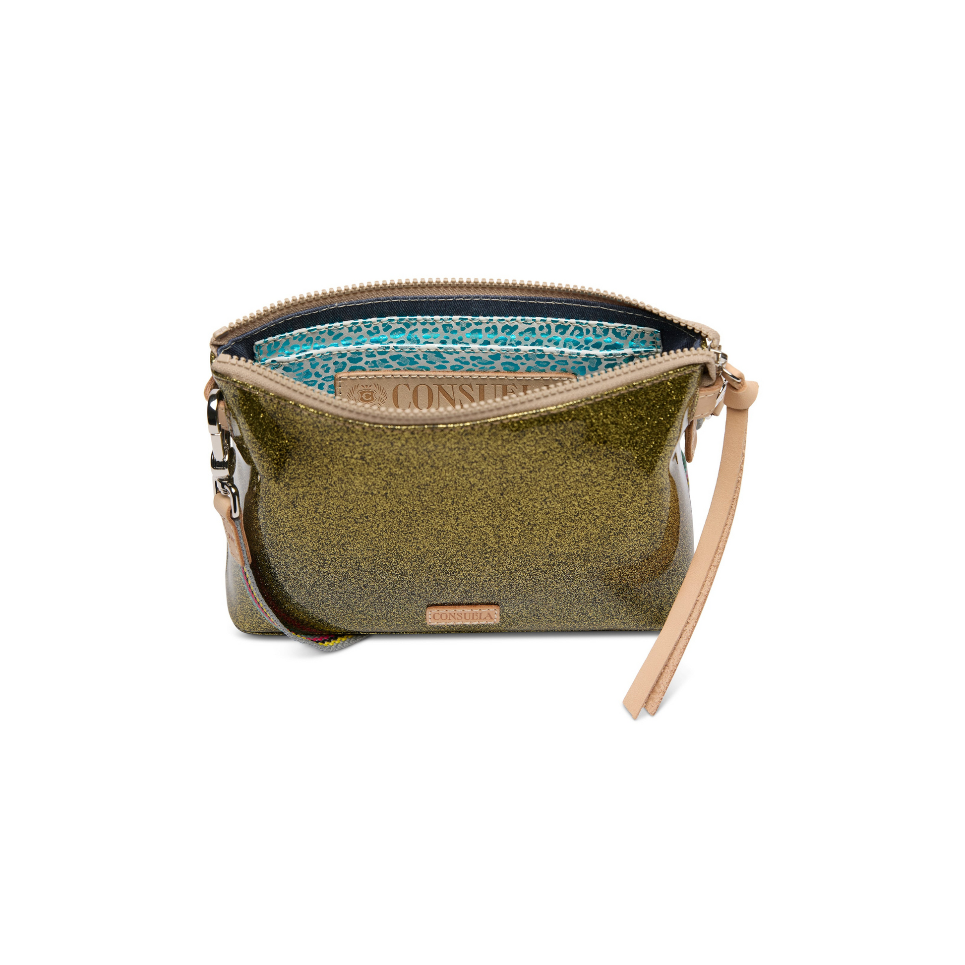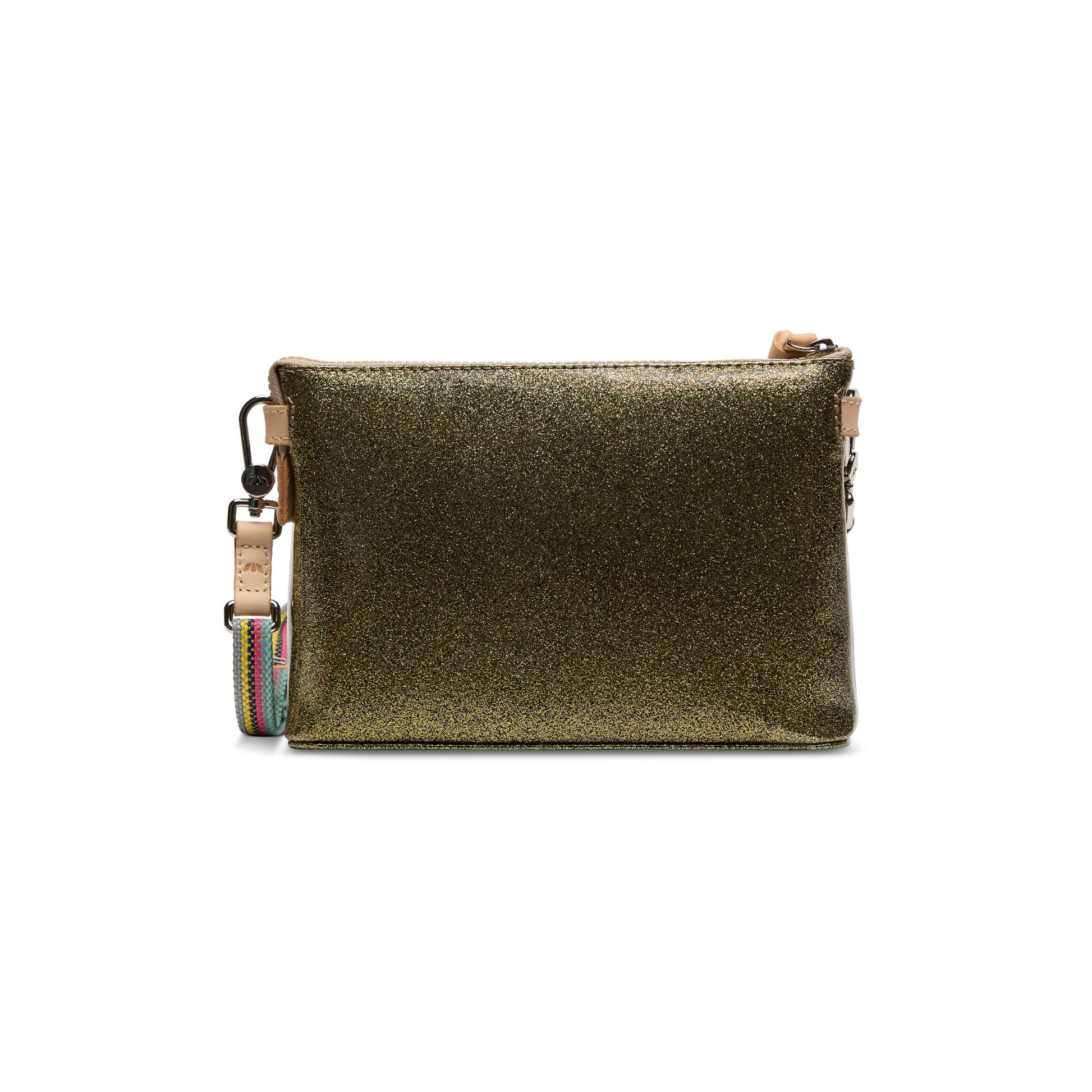 - 8 ¼" (W at the base), 9 ¼” (W at the top) x 5 ¾” (H) x 2" (D), 14 ½”-27 ½” adjustable crossbody strap drop
