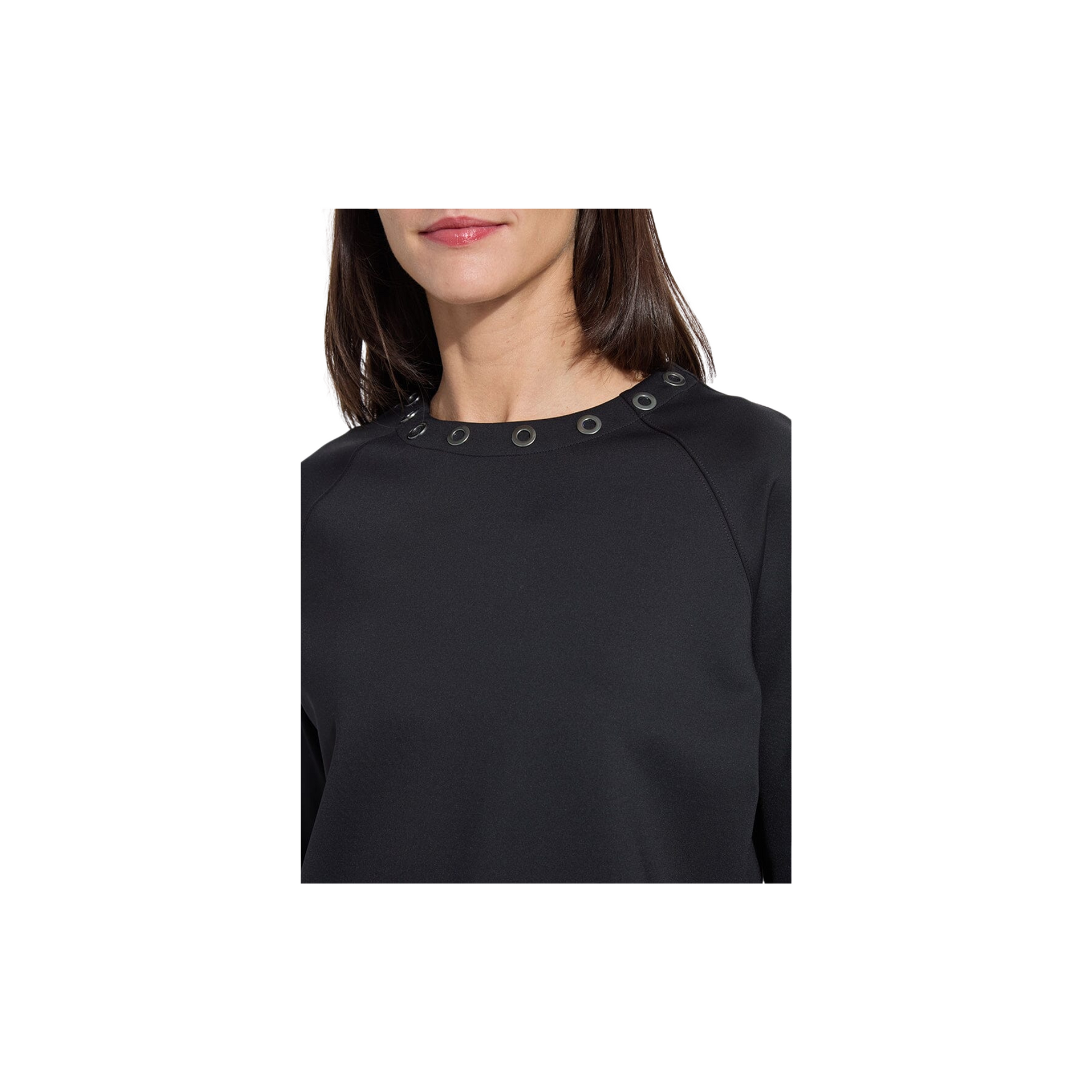 Sleek, sculptural, and endlessly wearable, the Lysse Desi Pullover redefines athleisure with a luxe edge. Cut from the brand’s signature neoprene, it offers a smooth, body-skimming drape with just the right amount of stretch for comfort. Statement grommet accents along the neckline add modern polish, making this top as chic layered under a blazer as it is styled solo.