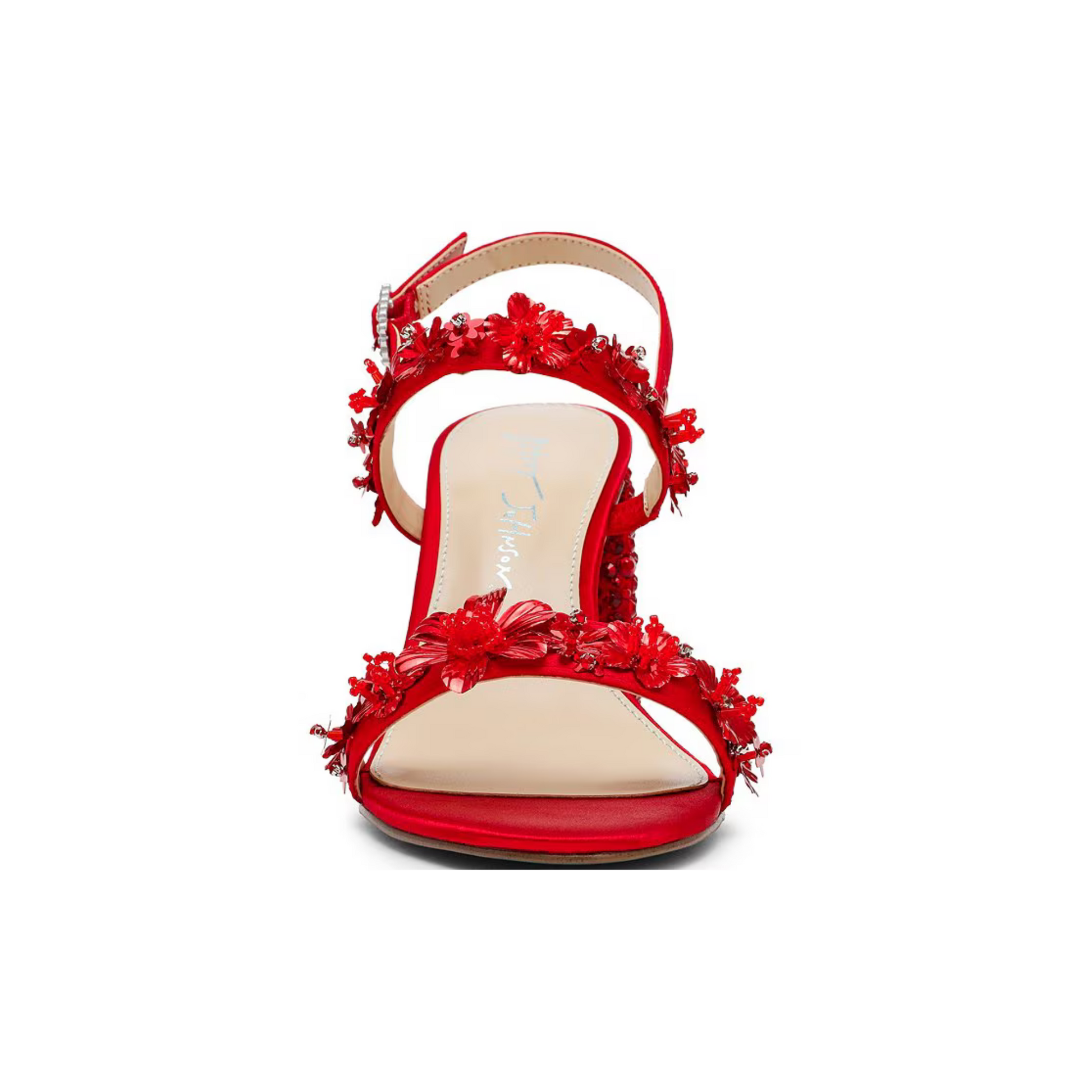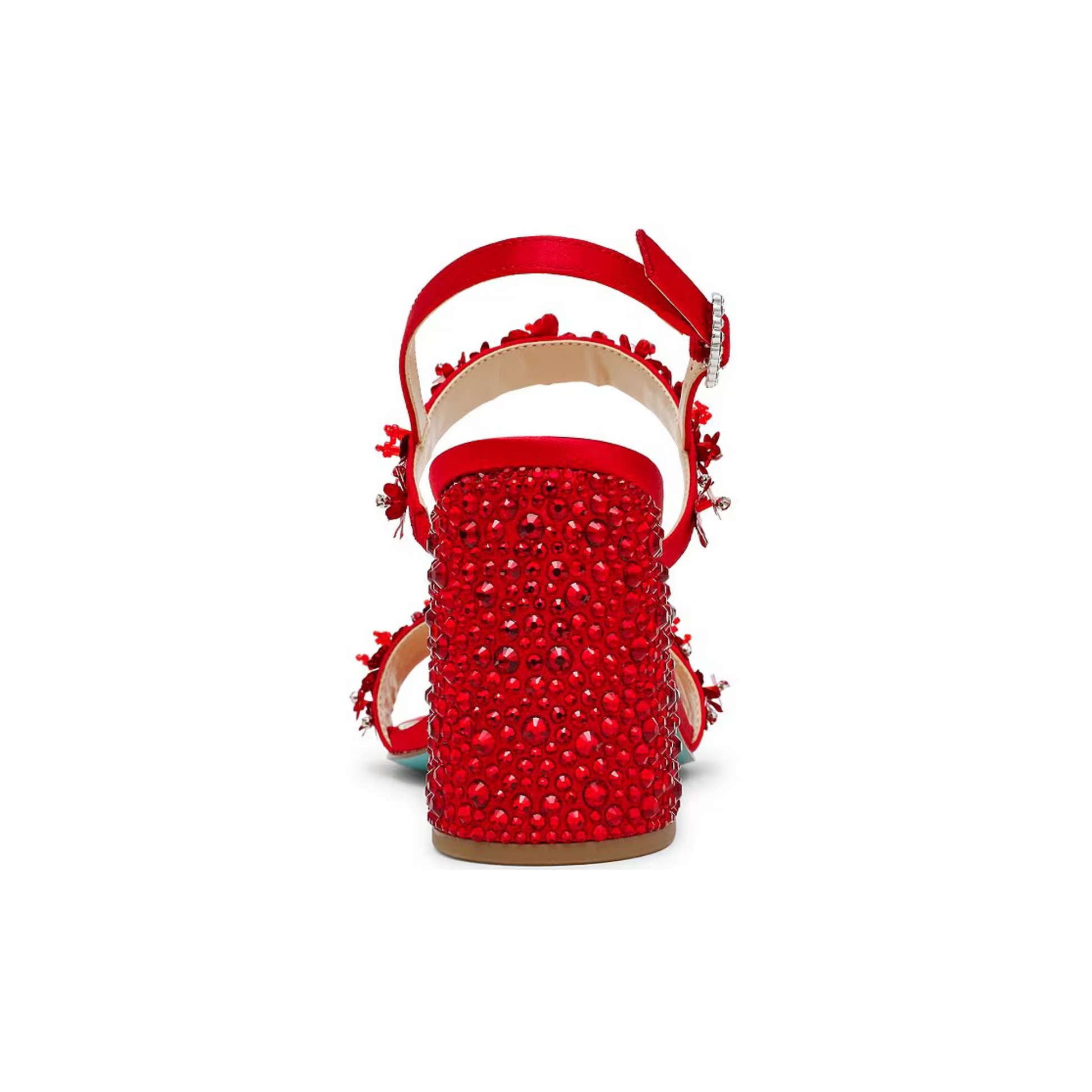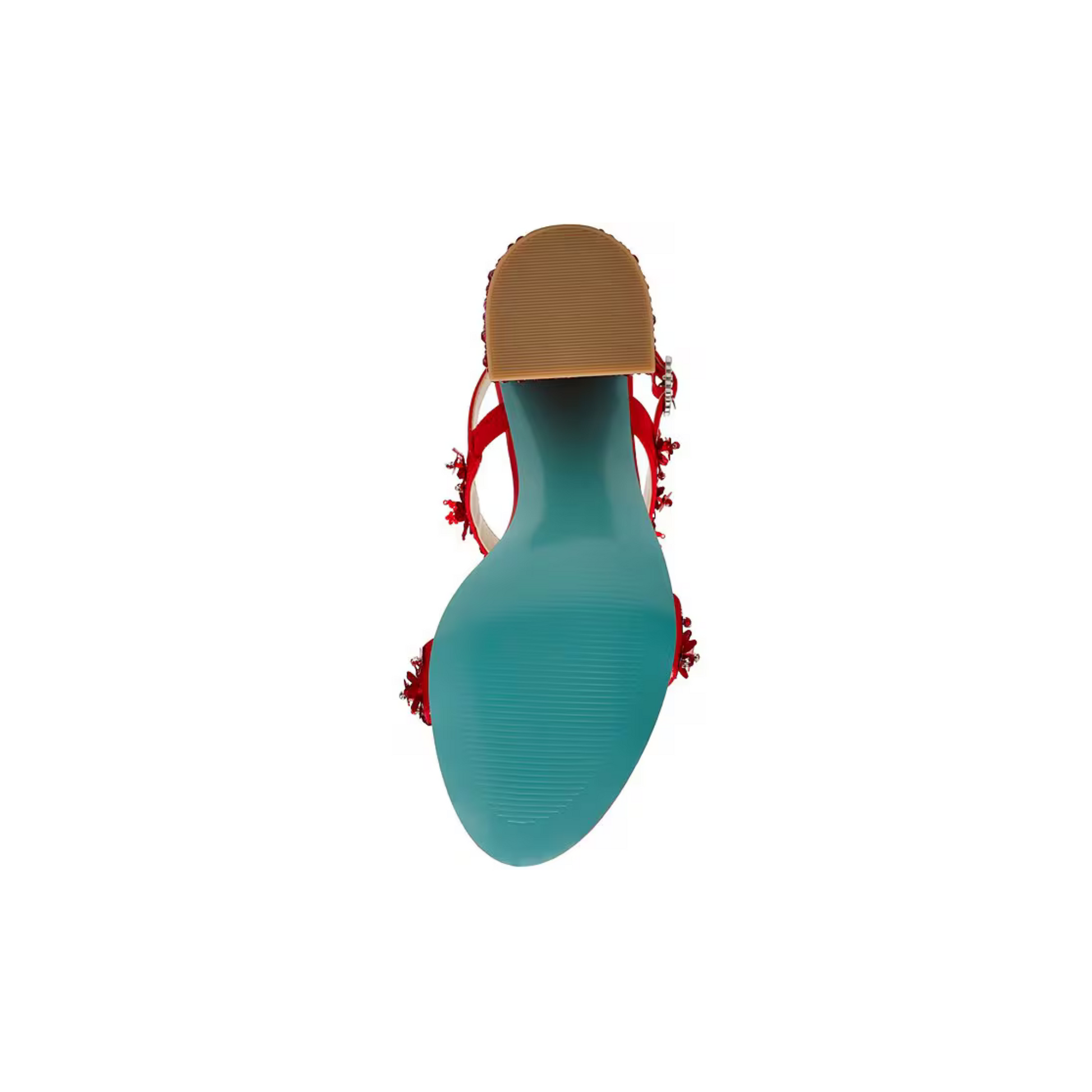 Drue Metallic Rhinestone Embellished Dress Sandals -Red