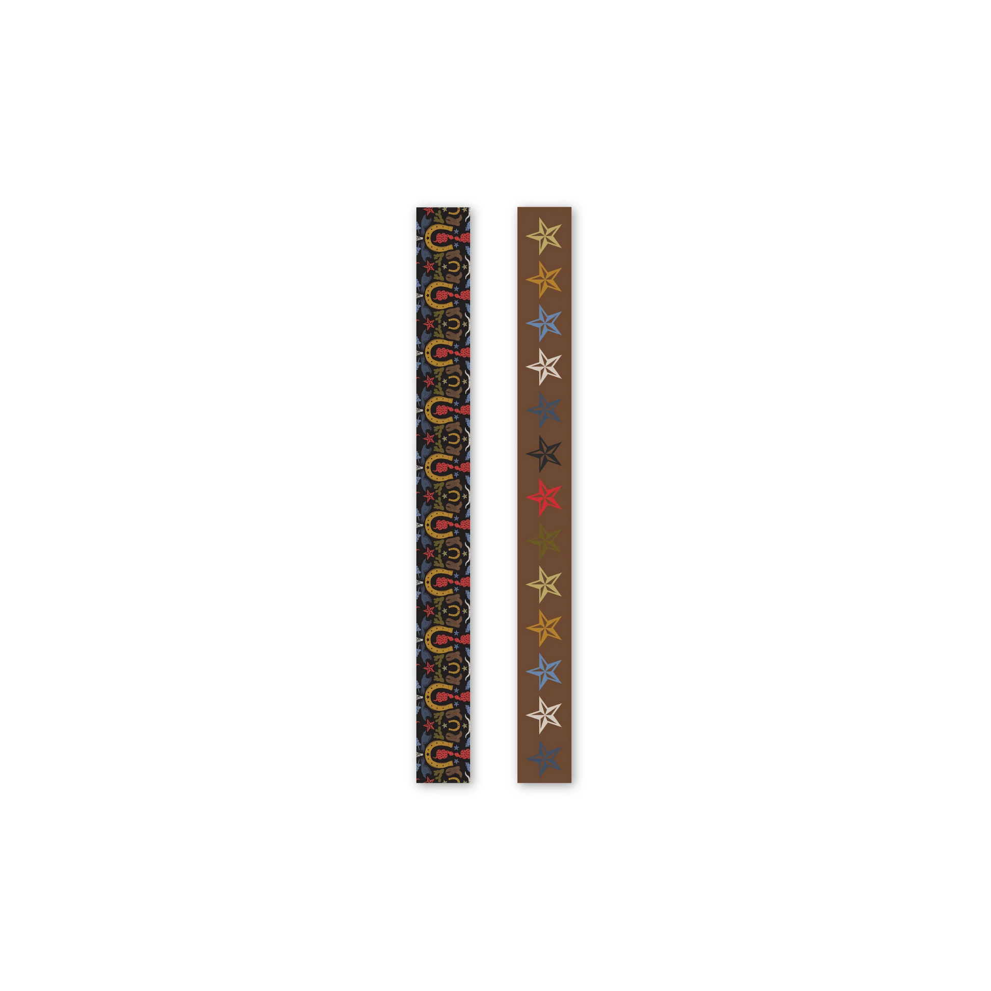 The Lone Star Scarfette is a versatile skinny silk twill scarf that captures the spirit of Texas in a modern way. One side highlights a collage of western icons—horseshoes, boots, snakes, stars, and bluebonnets—while the reverse showcases rows of bold Texas stars. Its double-sided design gives you multiple styling options, whether tied at the neck, wrapped on a bag, or worn as a hair accessory. Crafted in 100% silk, it’s a collectible piece that balances heritage with a chic edge.