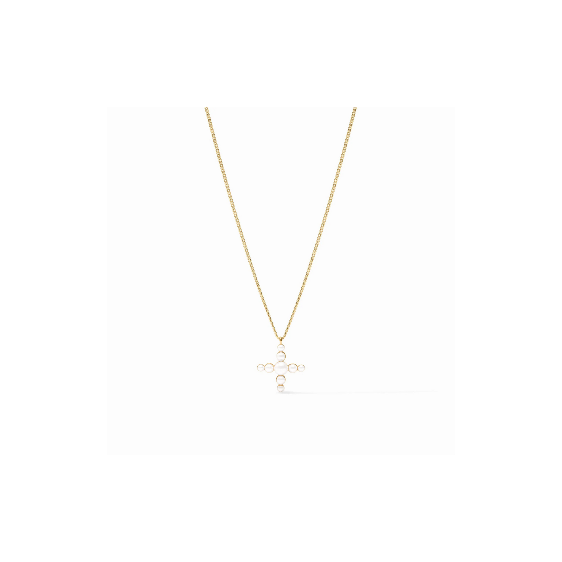 Gumdrop Cross Delicate Necklace -Pearl/Gold