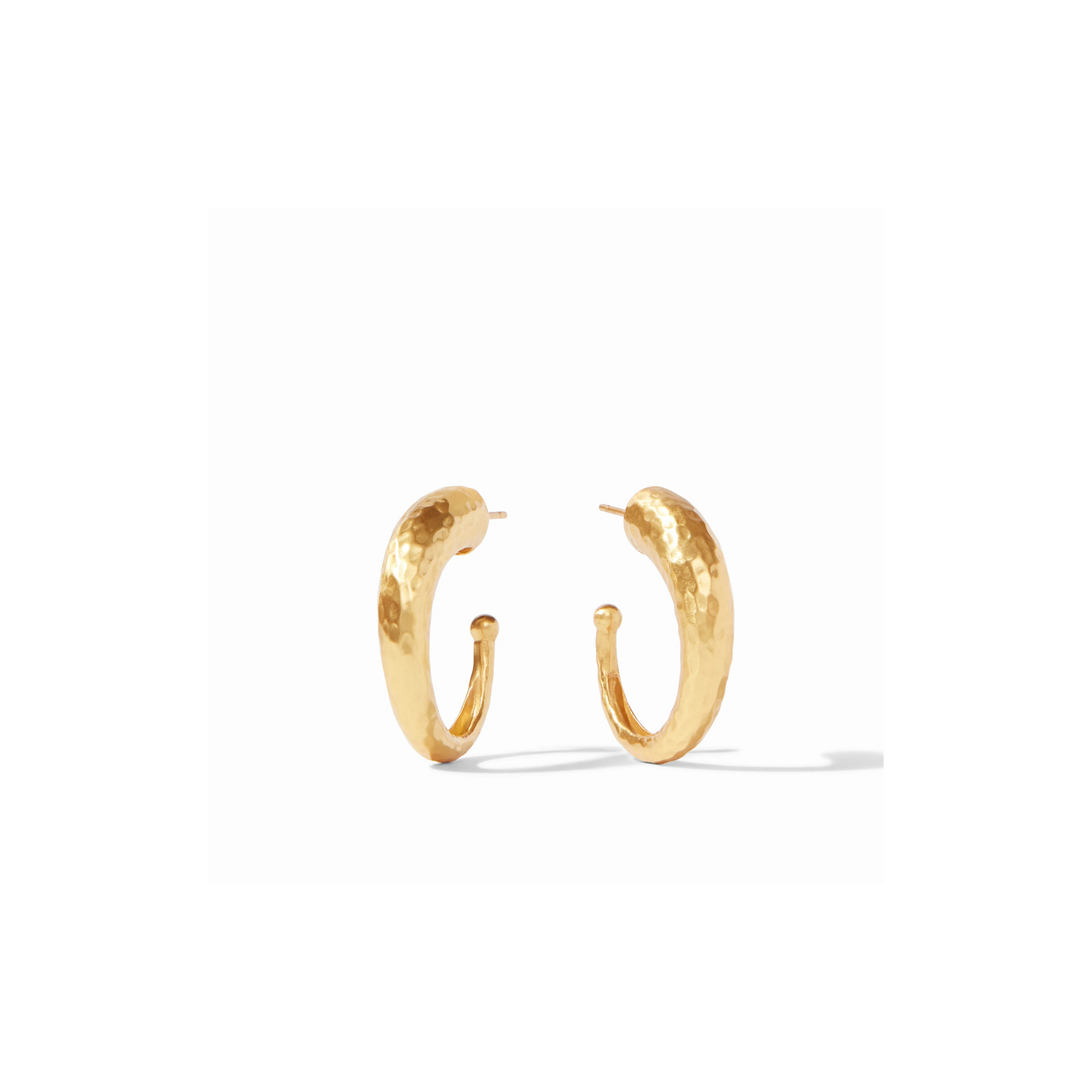 Lightly hammered hoop goes from thick to slender as it curves around.