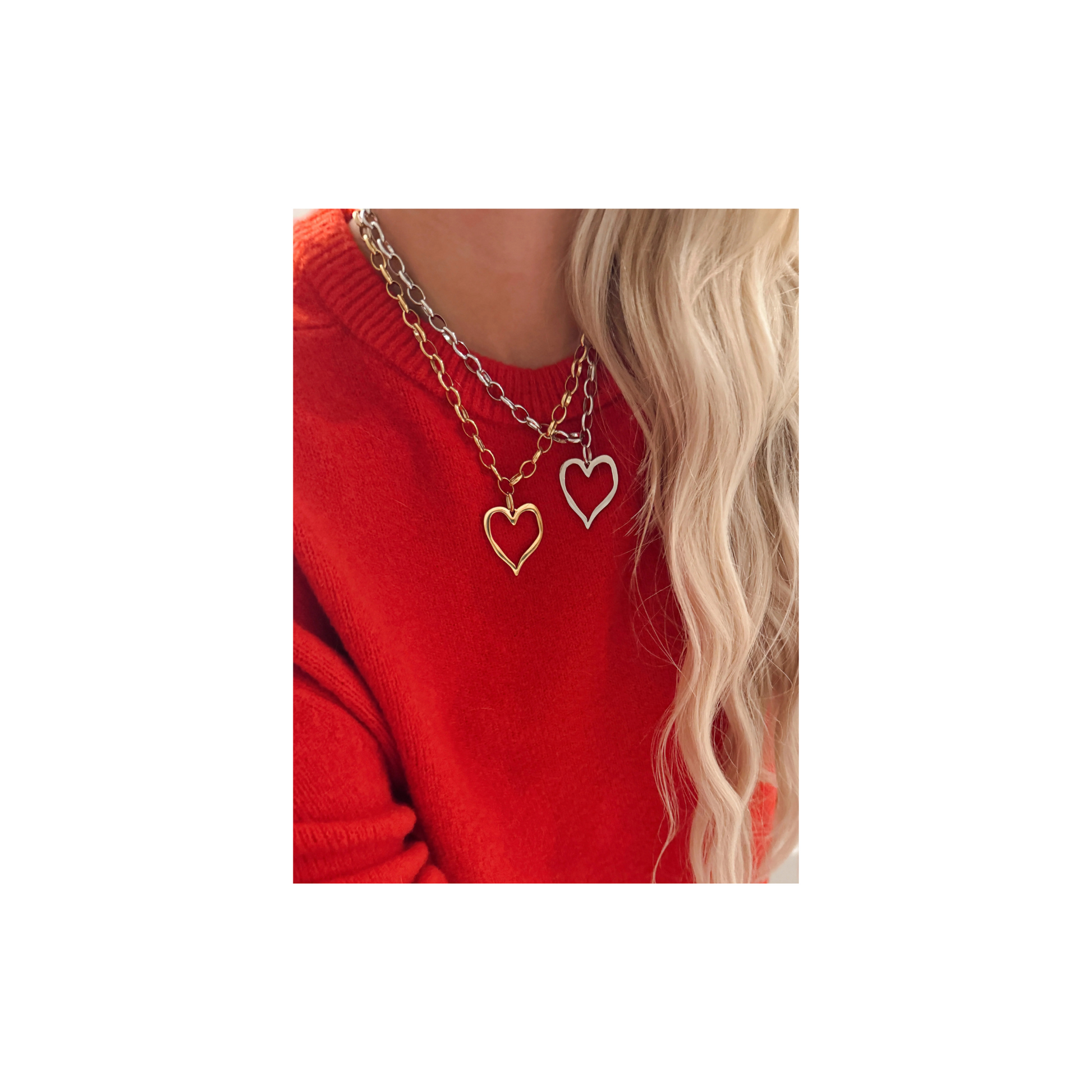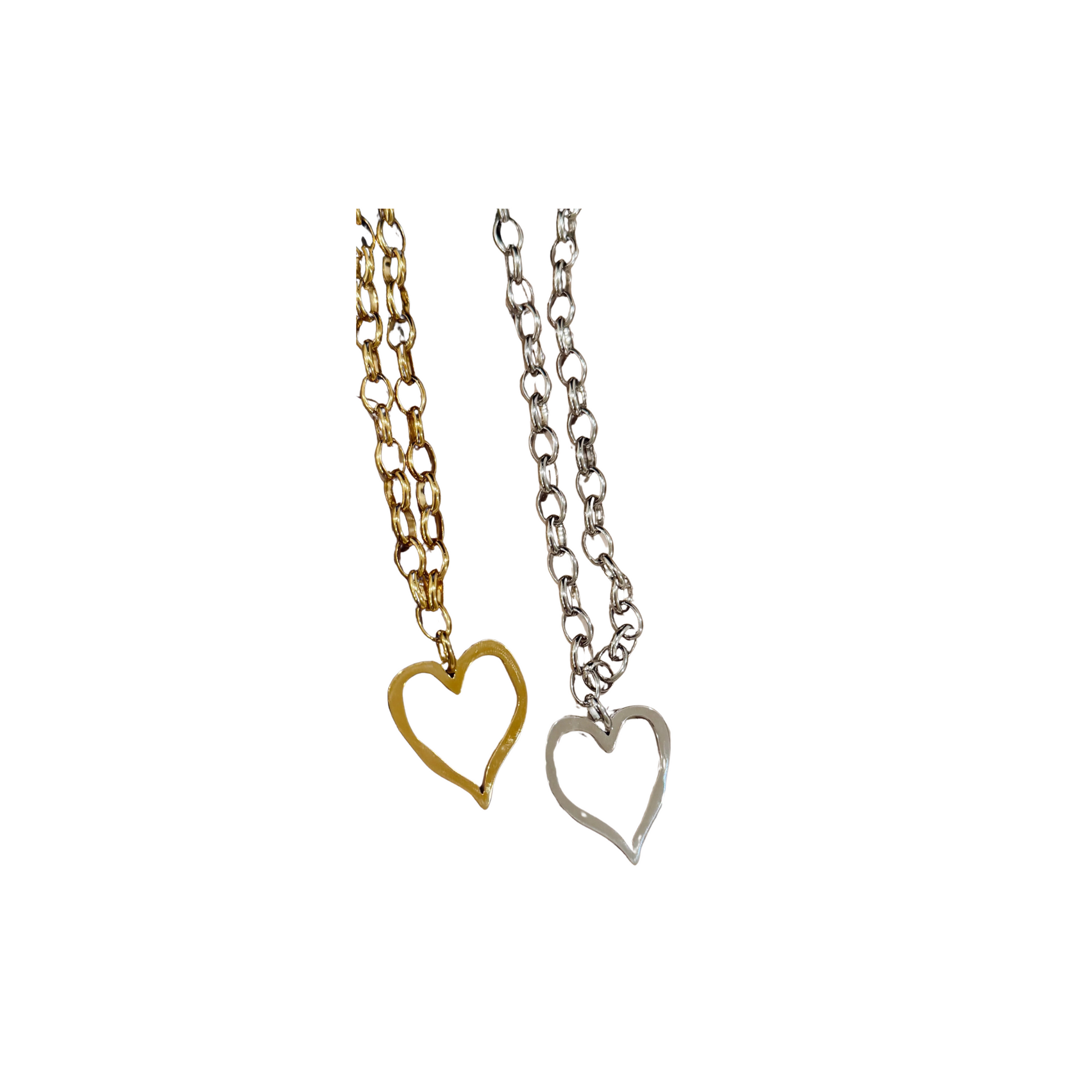 Large Open Heart Necklace -Silver