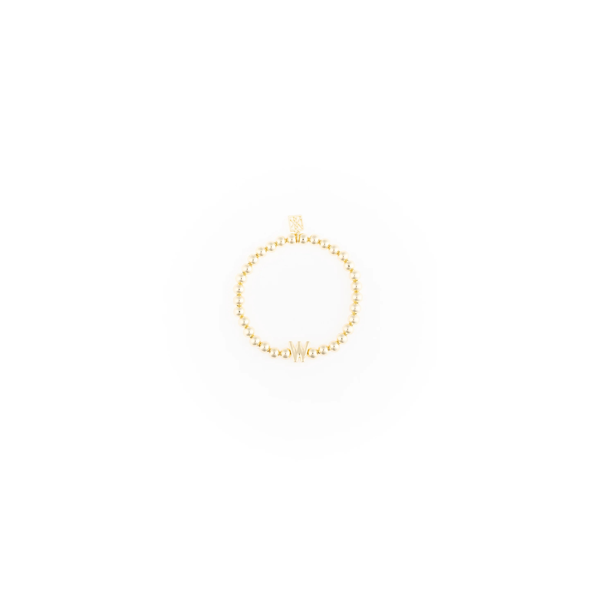 The Meredith Luxe Initial Bracelet—a sophisticated accessory that effortlessly combines contemporary design with a touch of personal elegance. This beautifully crafted bracelet features a signature initial detail, adding a subtle yet distinct accent to its sleek silhouette.