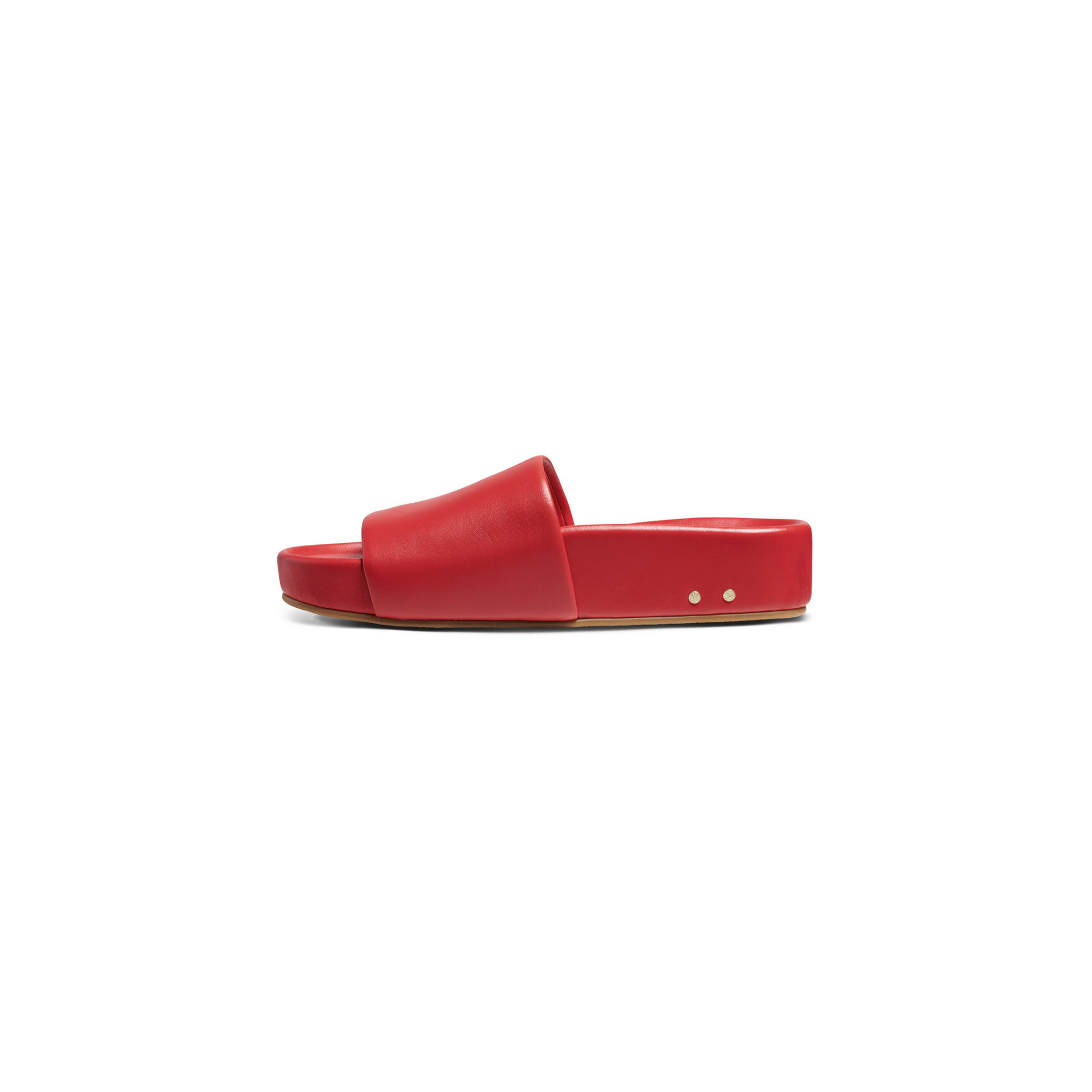 The PELICAN slide is a leather-wrapped memory foam molded footbed platform sandal (now that’s a mouthful!). The molded footbed will provide arch and overall foot support and the memory foam will give cushion to the sole. The upper is 100% leather and the outsole is rubber for an easy all-surface grip.
