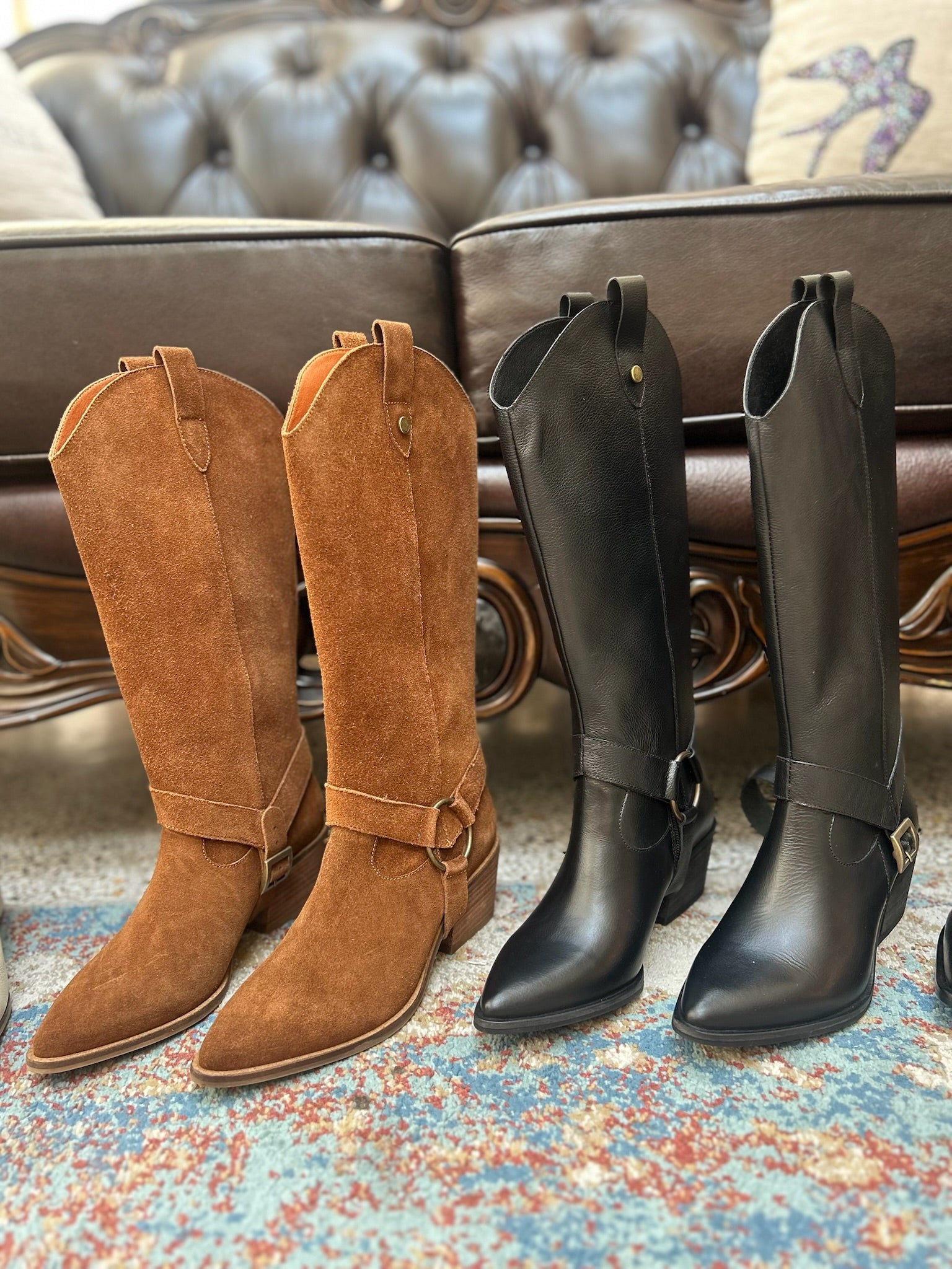 With its innovative 2-in-1 design, Penelope offers unparalleled versatility and convenience. Seamlessly transition from a knee-high boot to a chic bootie in a matter of seconds, effortlessly adapting to your style needs. Its design remains elegant, but with an edgy flair.