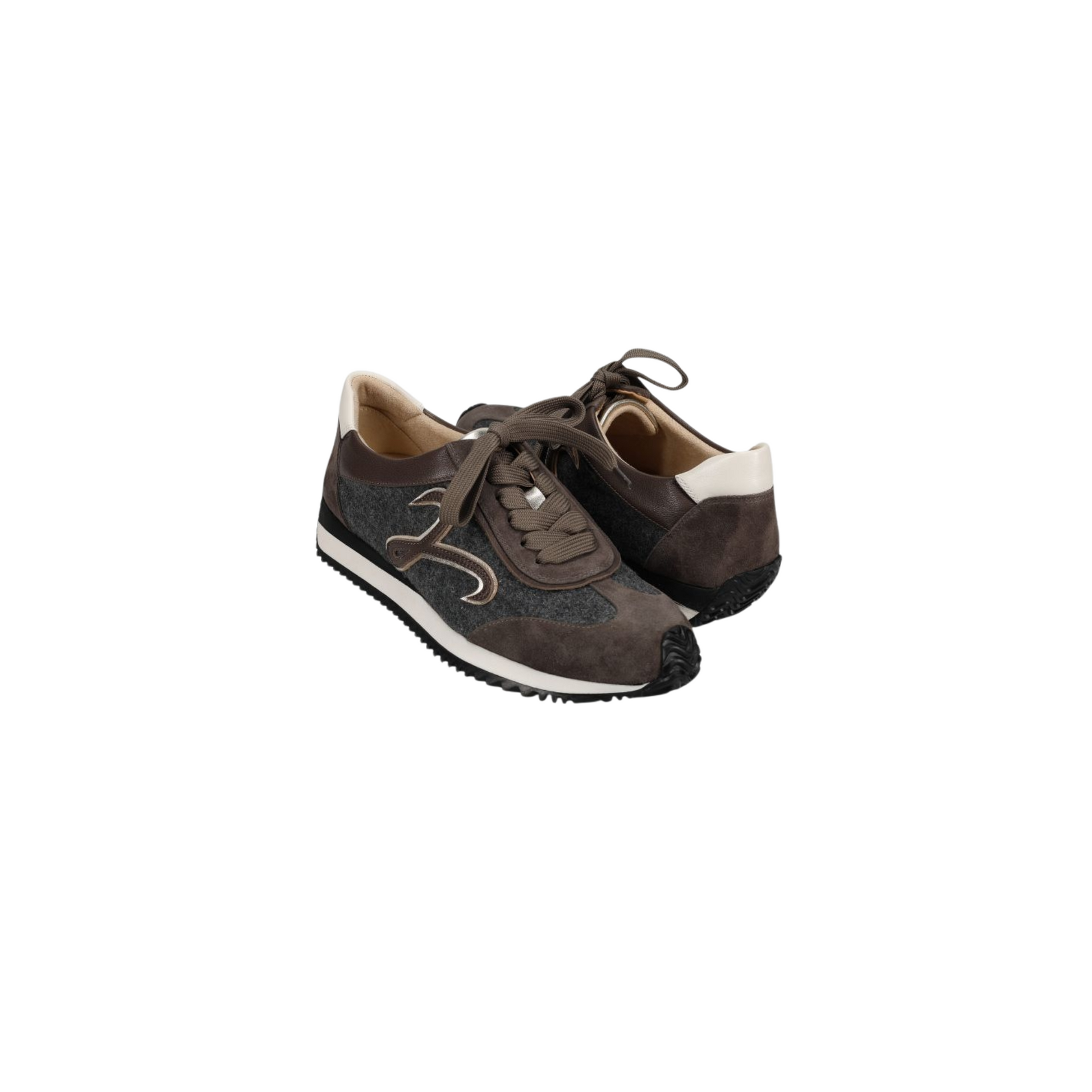 Flannel retro lace-up athleisure sneaker. Ultra-padded insole. Two-tone midsole. 1 inch rubber athletic sole.