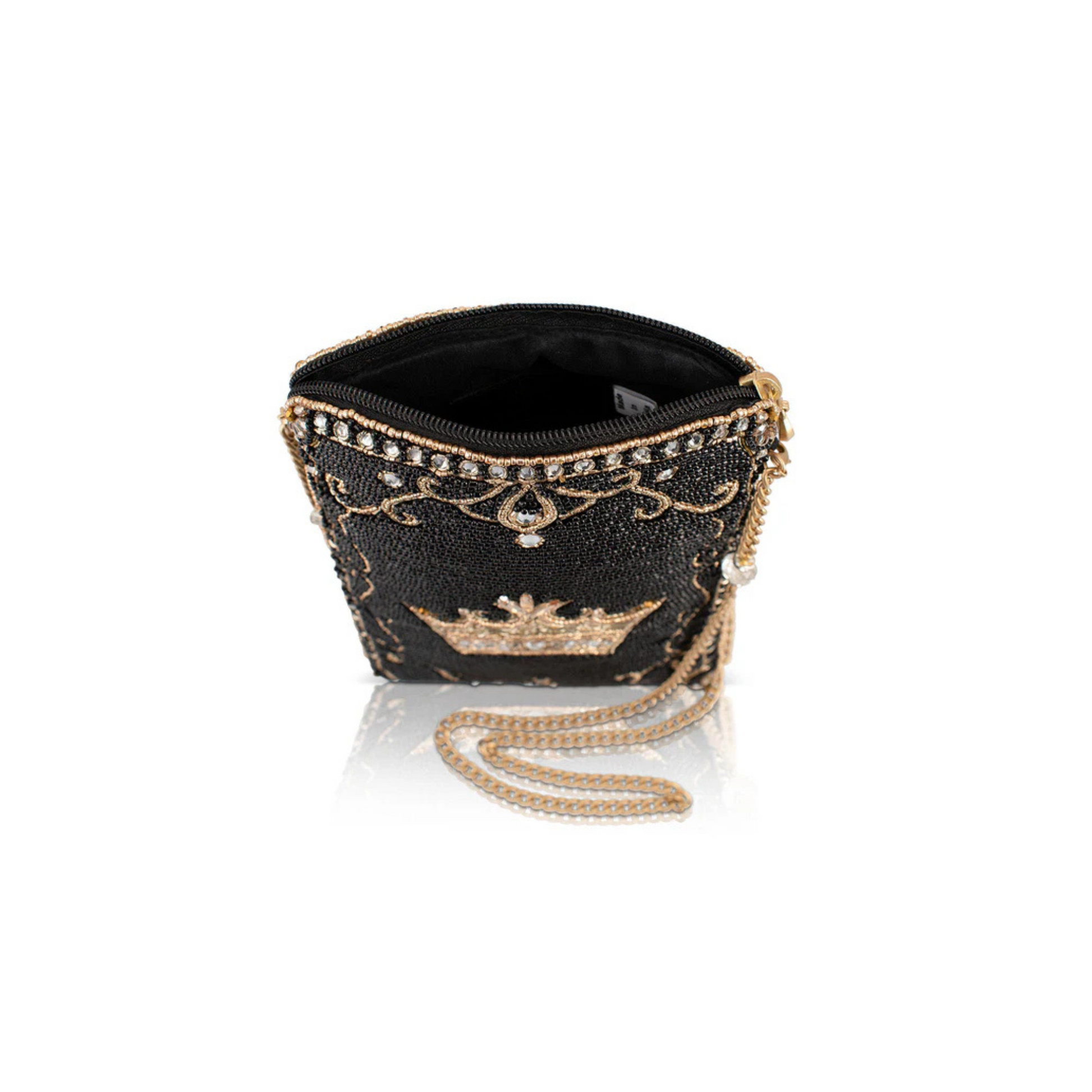 Fit for a queen! This beaded beauty sparkles with royal charm, featuring a golden crown and luxe details. Carry it over the shoulder or crossbody and rule every room.