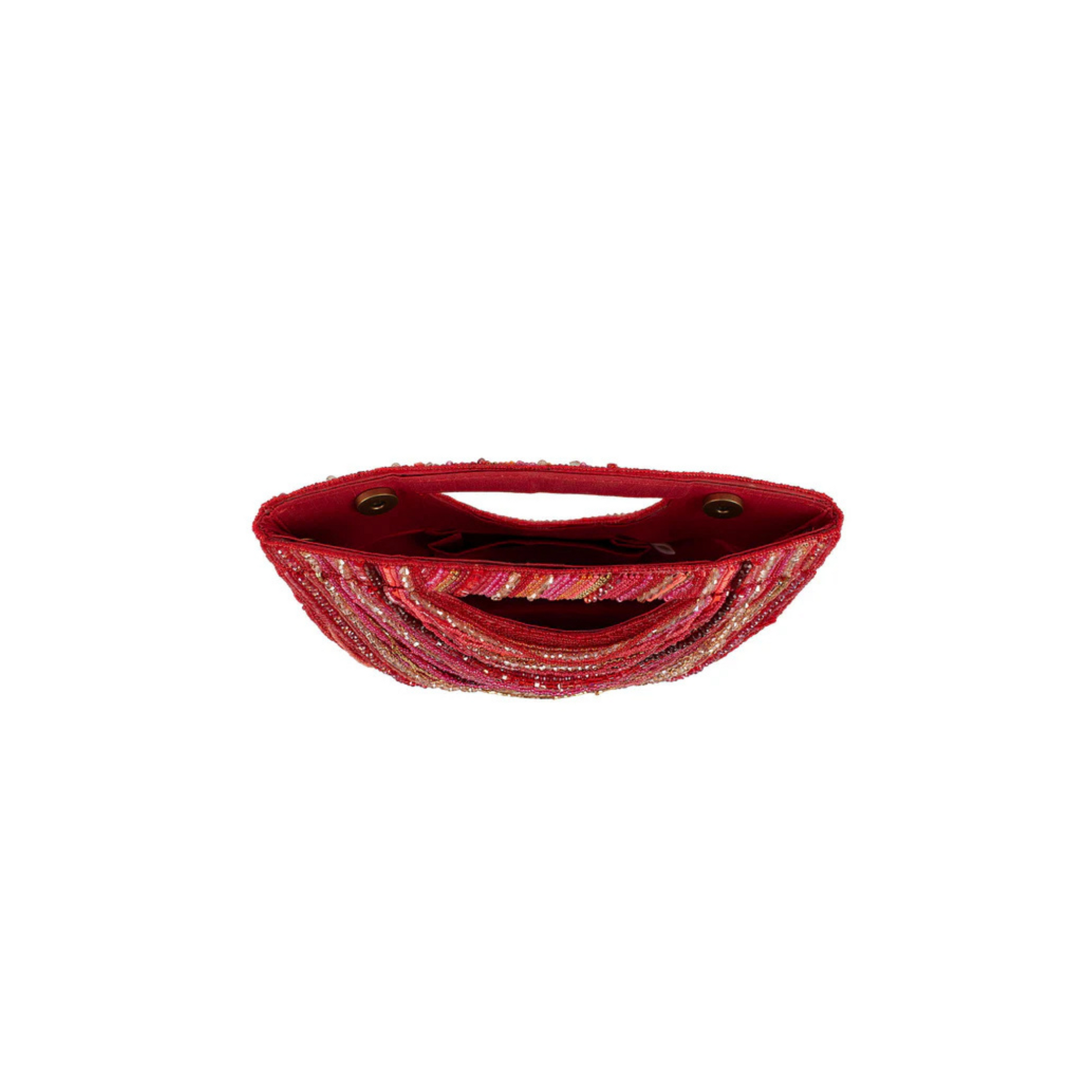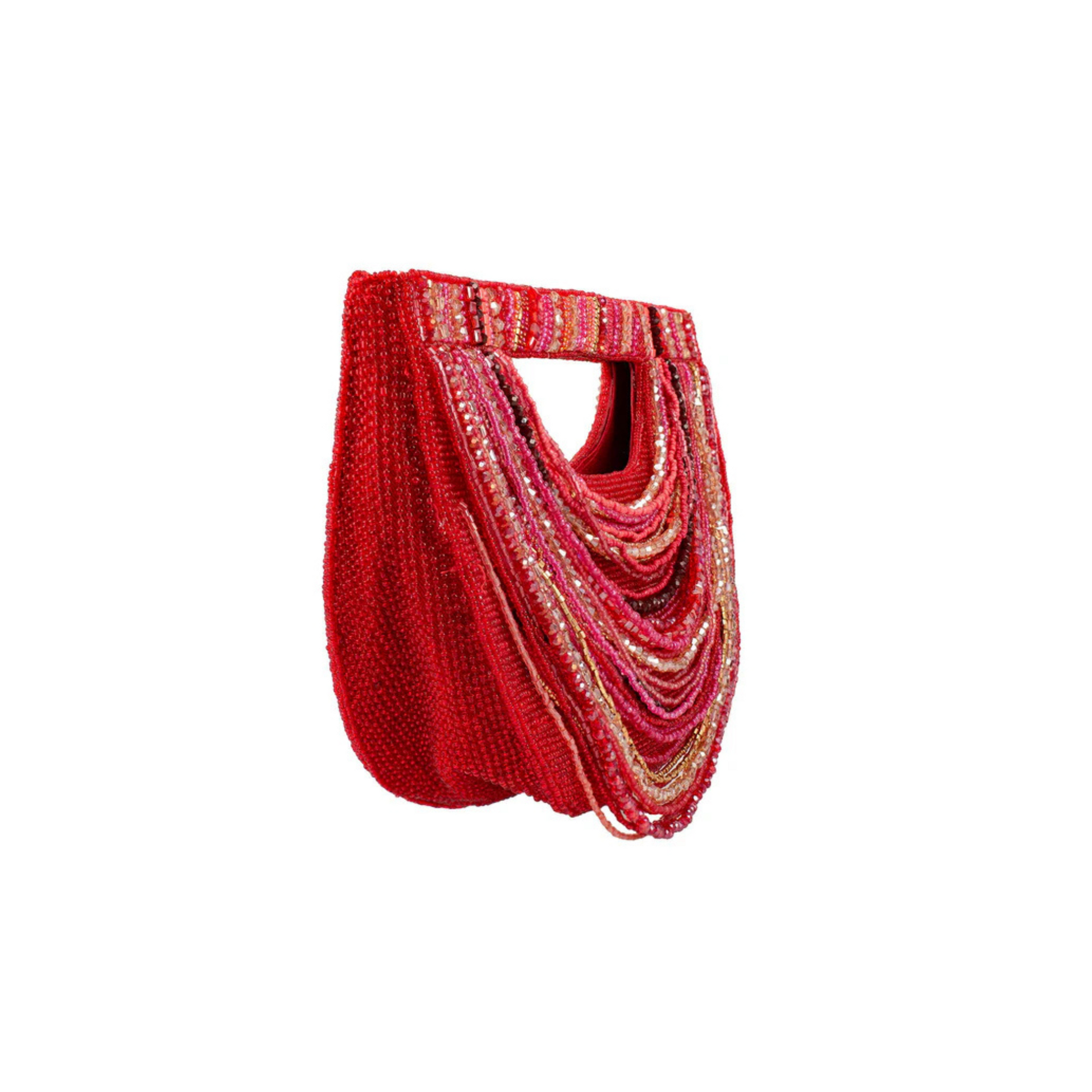 Turn every entrance into a celebration with this dazzling handbag, draped in layers of red, pink, and gold beaded brilliance. This purse is a party in accessory form bold, joyful, and full of flair. Whether handheld or worn crossbody with the chain strap, this handbag steals the spotlight effortlessly!
