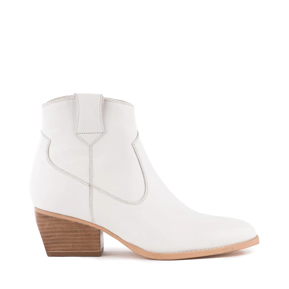 Casual, everyday ankle boots get the Western treatment with classic yoke stitching and an underslung heel. A side pull tab and subtle angular details at the toe and heel add specialness to this timeless silhouette.